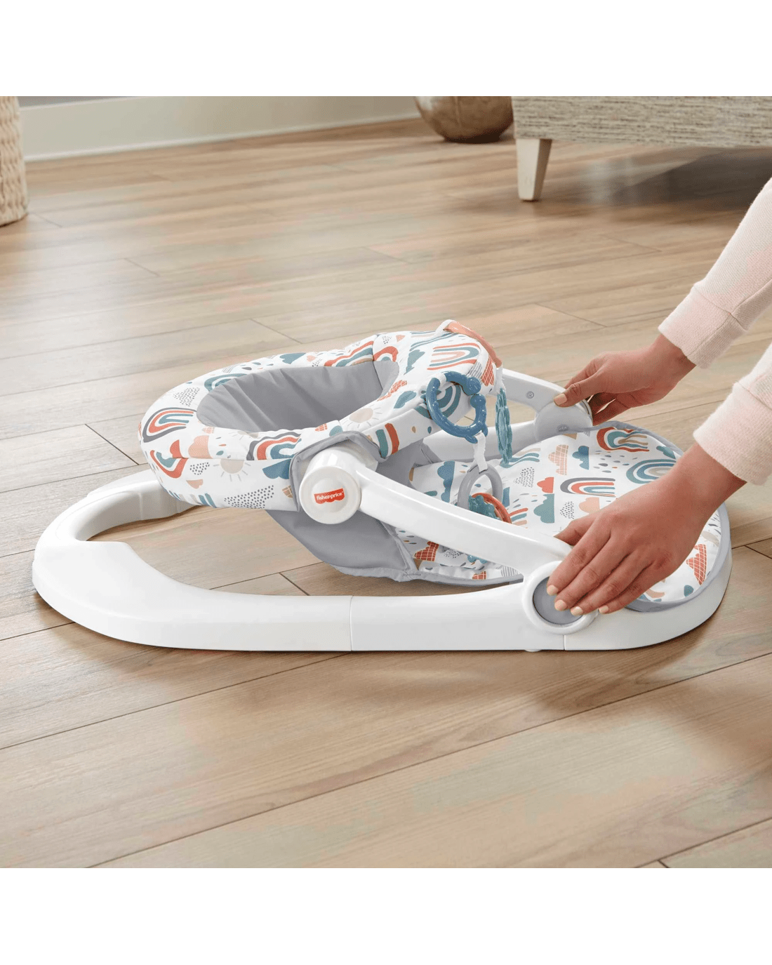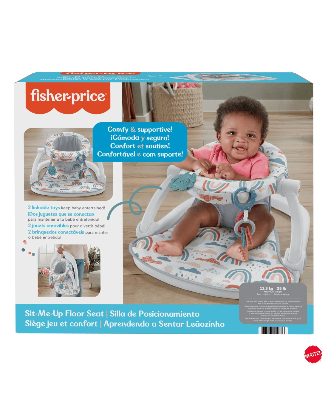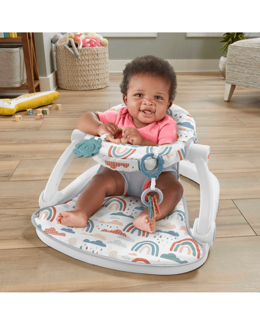 Give your baby the extra help they need to sit up and see the world around them with the Sit-Me-Up Floor Seat from Fisher-Price. This cosy and supportive chair has a machine-washable seat pad and two linkable toys to help keep baby entertained. Plus, the portable infant seat conveniently folds flat for travel or storage.