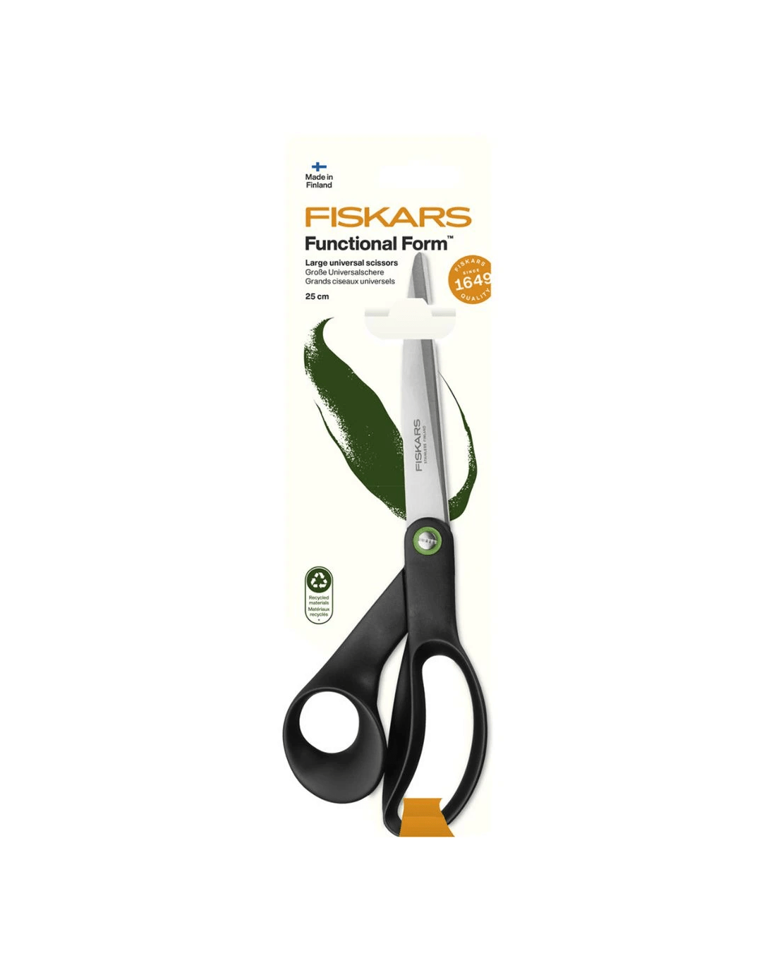 These Fiskars Large Universal Scissors are designed for comfort and durability while supporting sustainable choices. They feature long stainless steel blades and ergonomic handles. Plus, they’re ideal for a wide range of cutting tasks around the home or office.