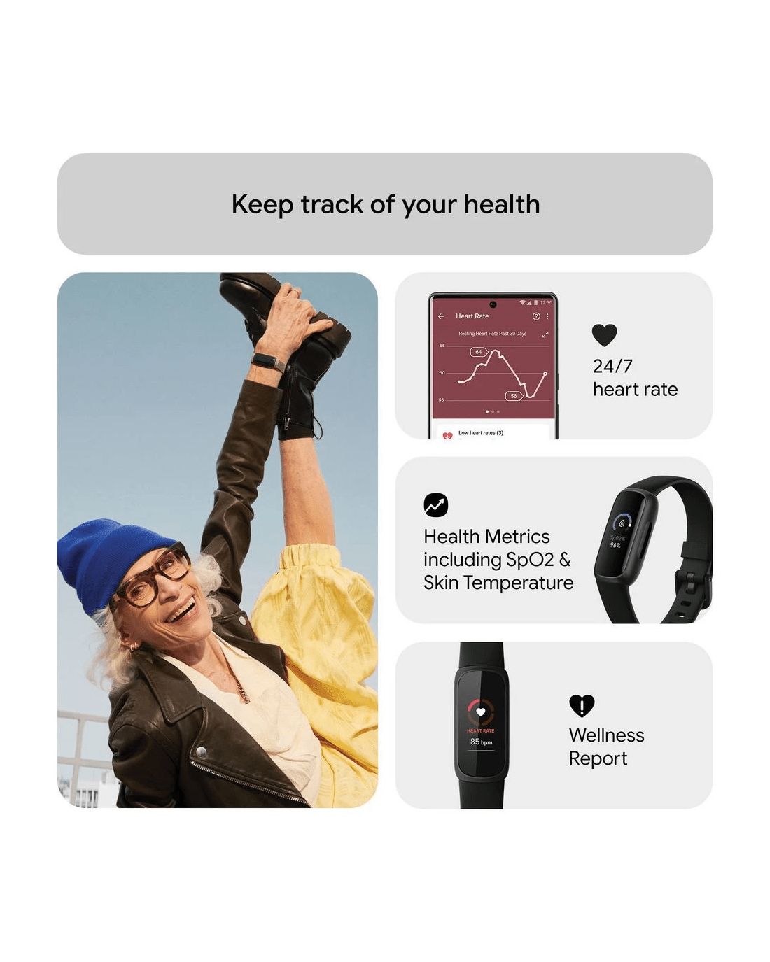 - Know your body better and do what’s best by watching for changes in your resting heart rate, blood oxygen, skin temperature, and more.¹