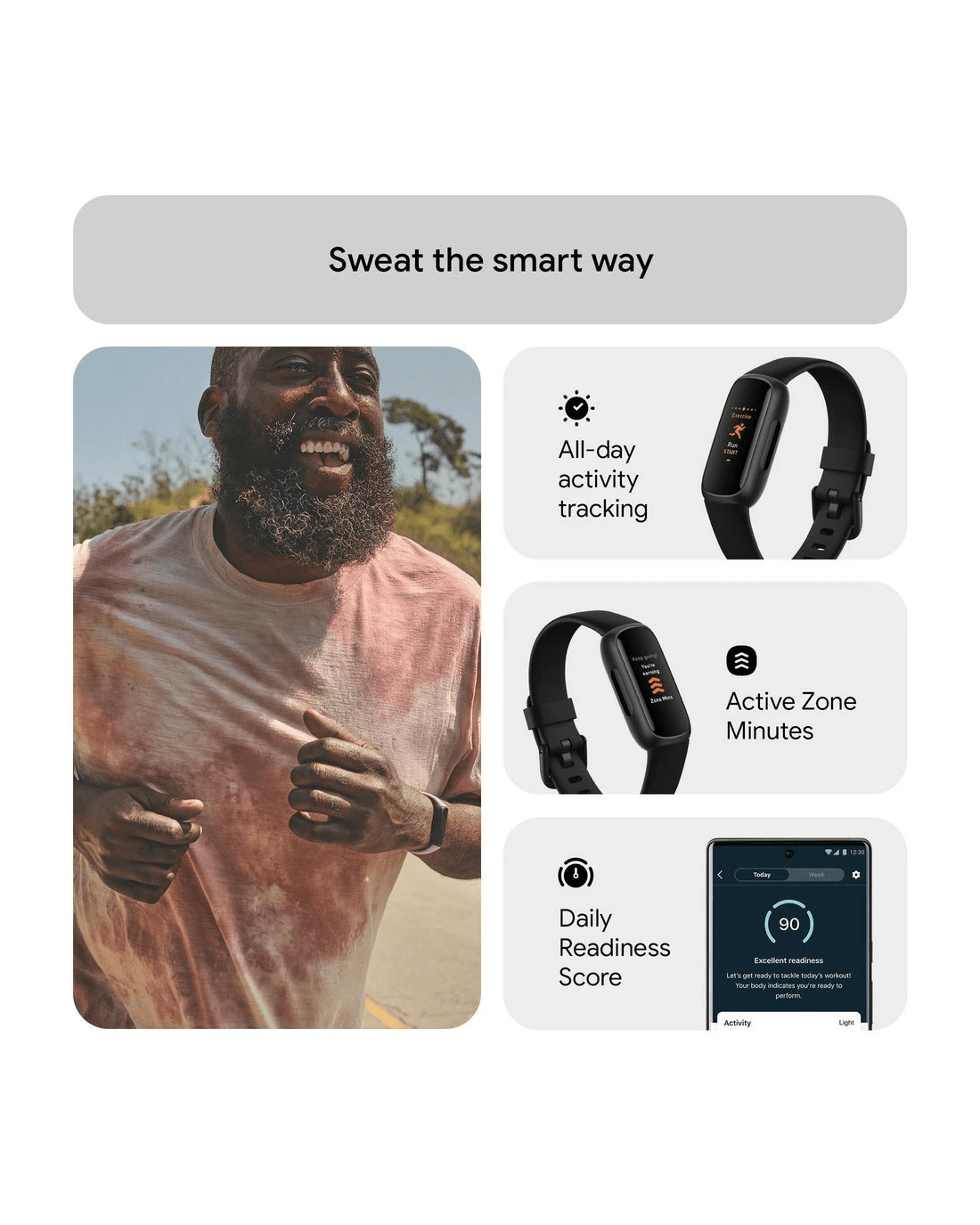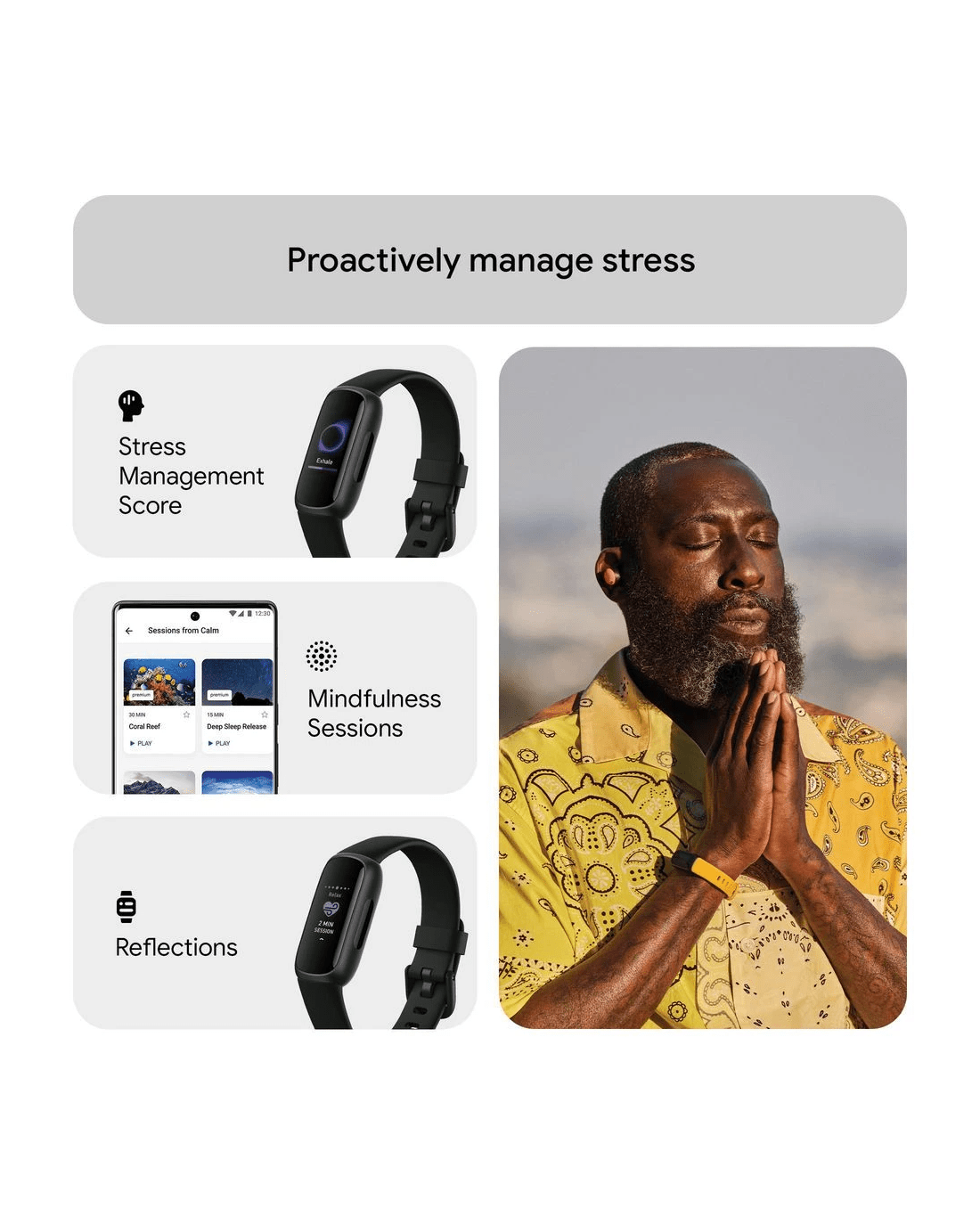Find your energy, do what you love, and feel your best with the Fitbit Inspire 3. Continuously track your heart rate and activity, plus gain access to your Stress Management Score and guided breathing sessions that teach you healthier ways to handle stress. Wake up to a daily Sleep Score that shows how you slept the night before, while the vibrating smart alarm wakes you during the optimal sleep stage.