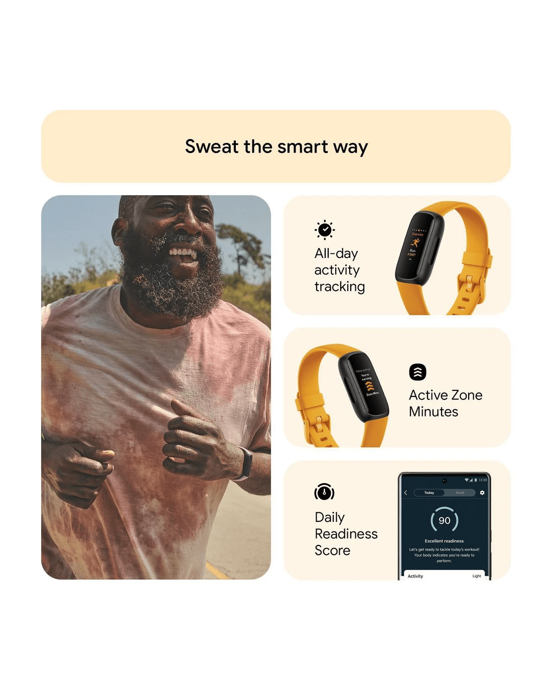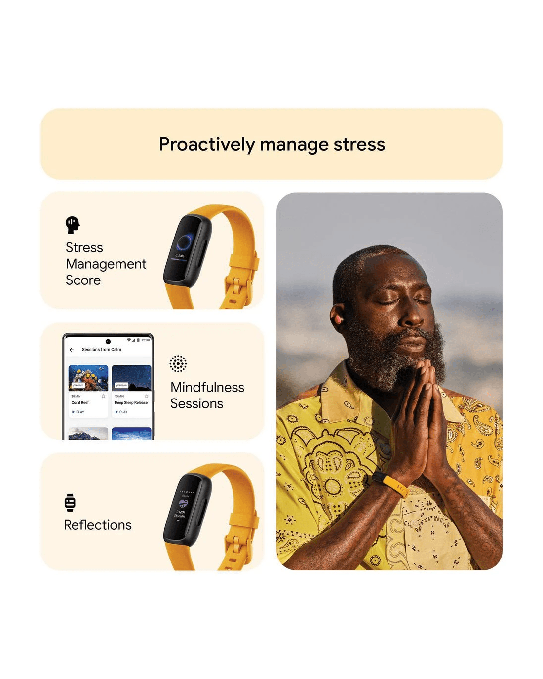 Find your energy, do what you love, and feel your best with the Fitbit Inspire 3. Continuously track your heart rate and activity, plus gain access to your Stress Management Score and guided breathing sessions that teach you healthier ways to handle stress. Wake up to a daily Sleep Score that shows how you slept the night before, while the vibrating smart alarm wakes you during the optimal sleep stage.