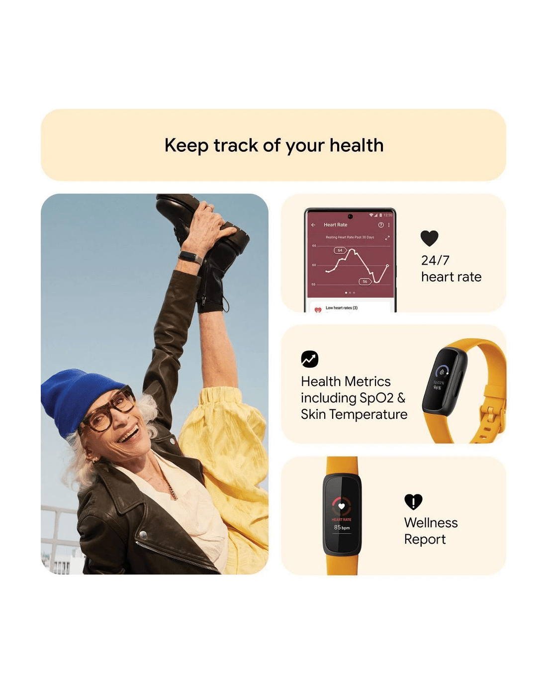 - Know your body better and do what’s best by watching for changes in your resting heart rate, blood oxygen, skin temperature, and more.¹