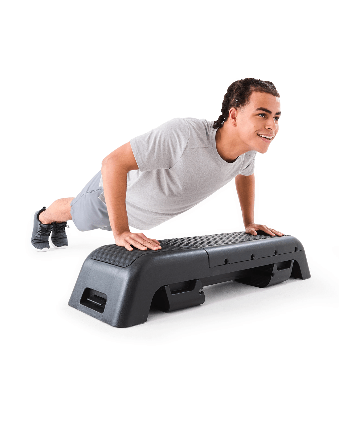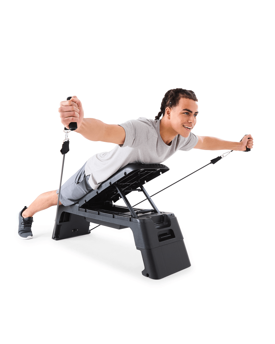 This product is excluded from the free delivery* offer, and will incur a delivery fee.Achieve versatile workouts with this Fitness Bench and Deck. Combining a step and weight bench in one compact design, it includes resistance band points, accessory storage and requires no assembly - perfect for full-body training at home.