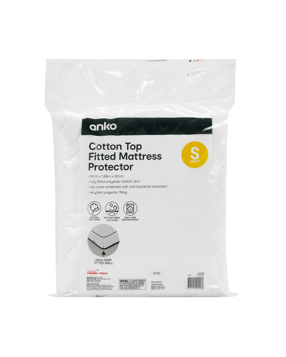 Cotton Top Fitted Mattress Protector - Single Bed, White
