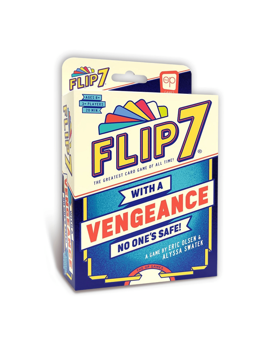 Flip over cards one by one without flipping the same number twice. Sound easy? Think again! This isn't just any deck of cards… In Flip 7: With A Vengeance, there's only one 1 card, two 2's, three 3's, etc. plus a bunch of special cards that can score you extra points, steal any card, or force an opponent to draw one more card!