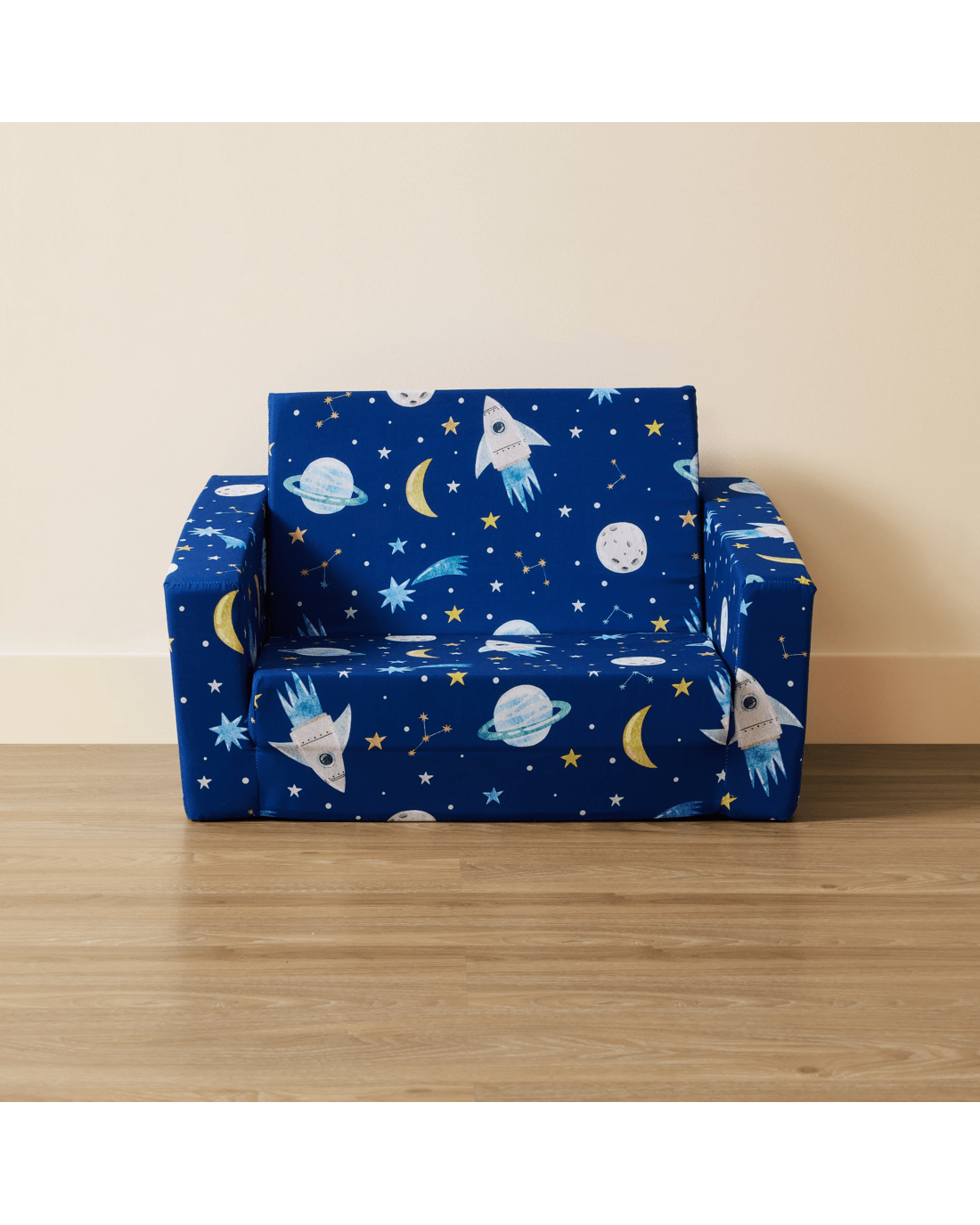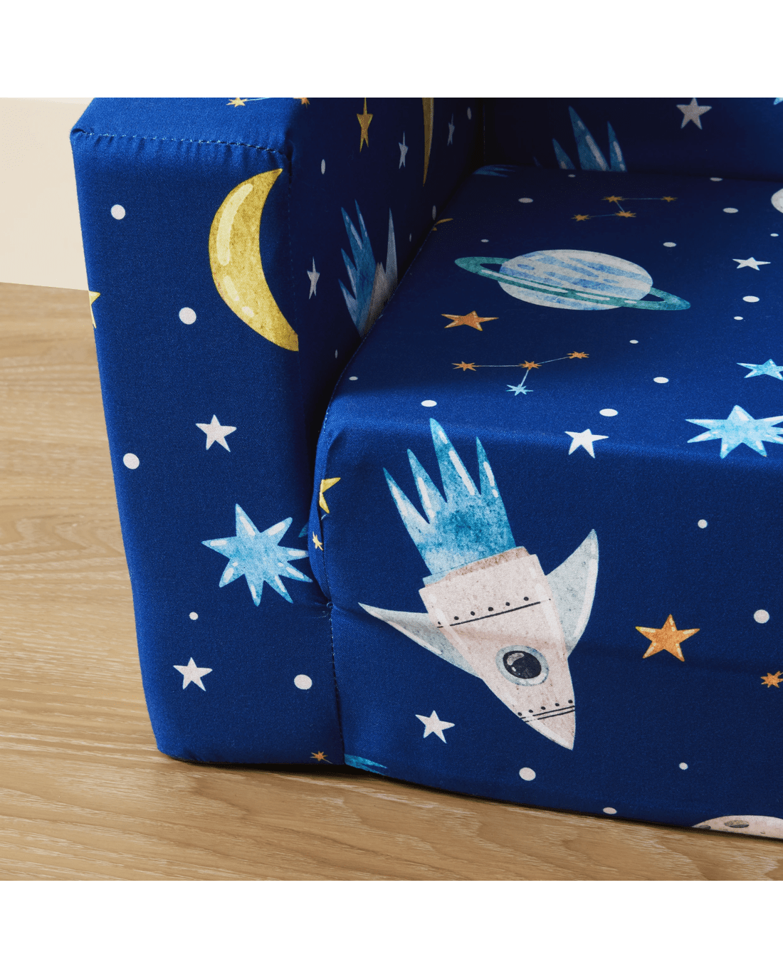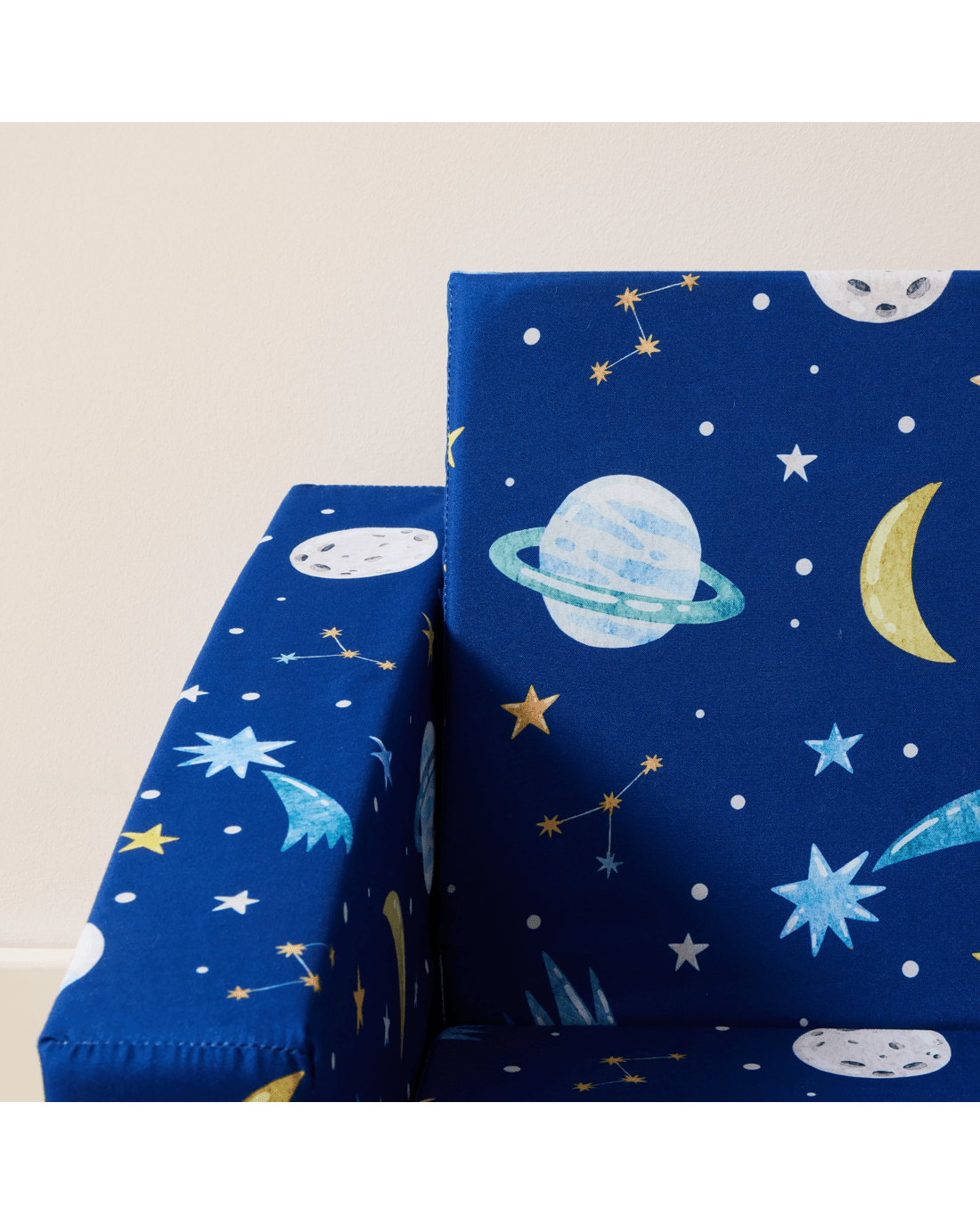 Fun Space Print: Featuring a lively space-inspired print, this sofa adds a sense of adventure to your child's room. Its vibrant design makes it an appealing piece that sparks creativity and blends well with playful interiors.