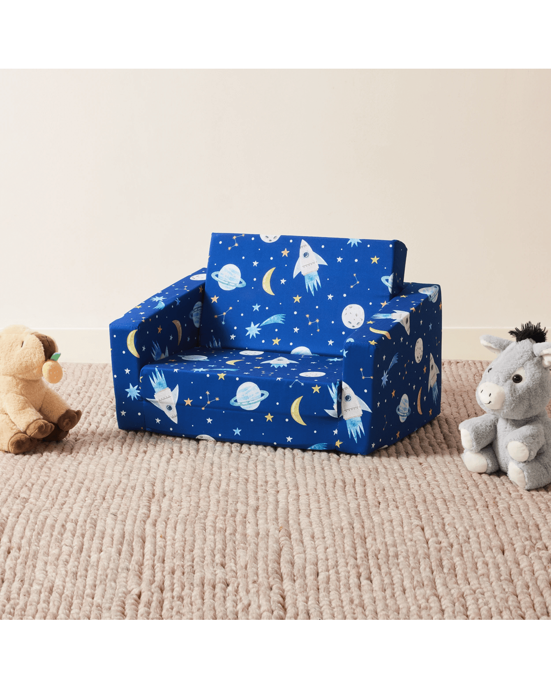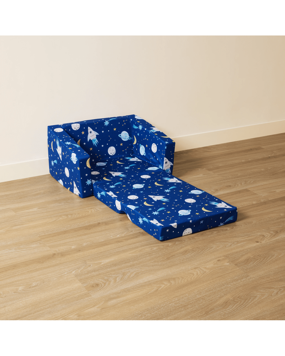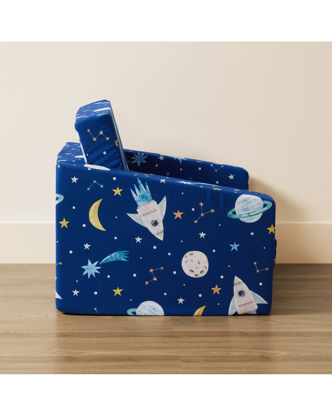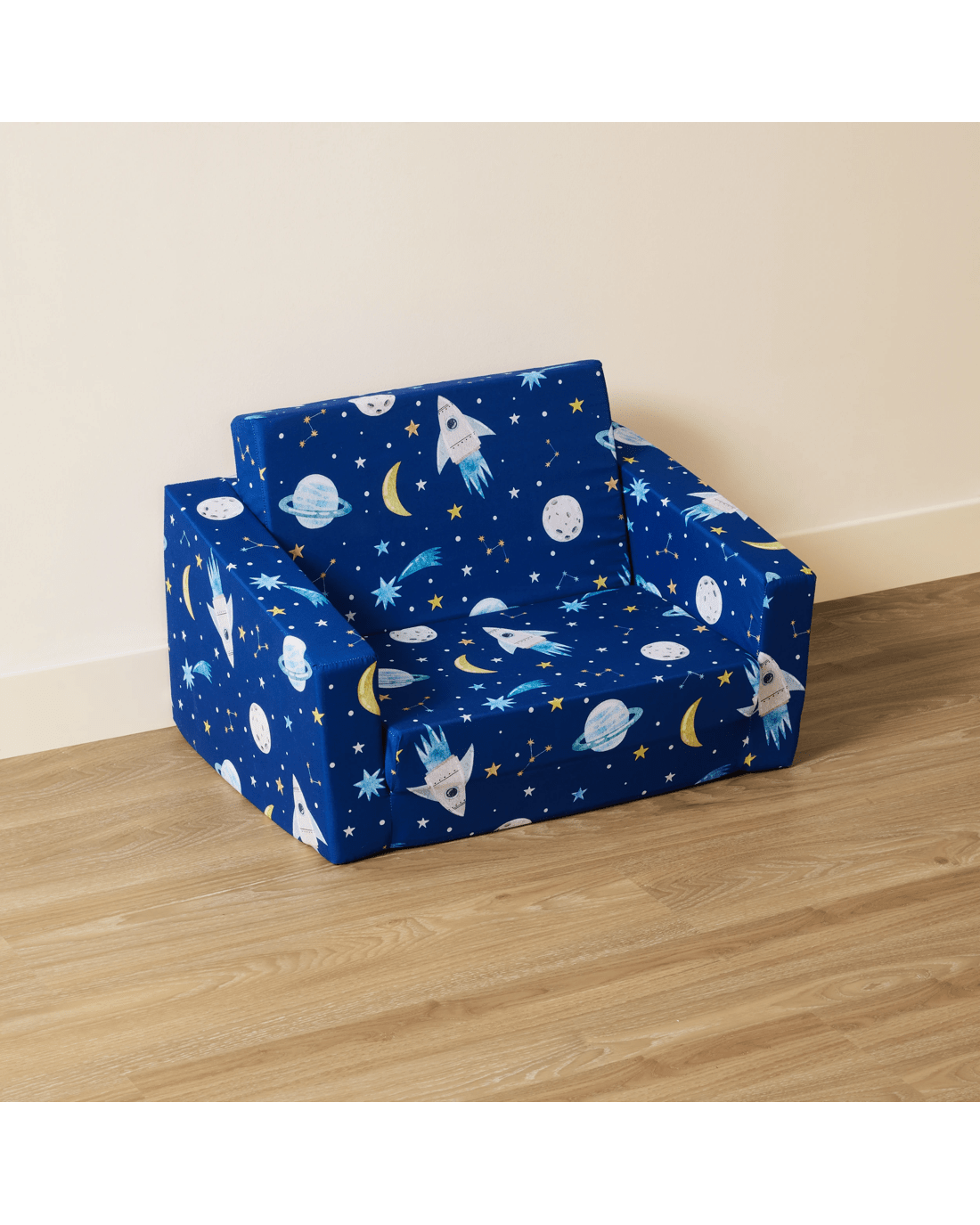 Fun Space Print: Featuring a lively space-inspired print, this sofa adds a sense of adventure to your child's room. Its vibrant design makes it an appealing piece that sparks creativity and blends well with playful interiors.