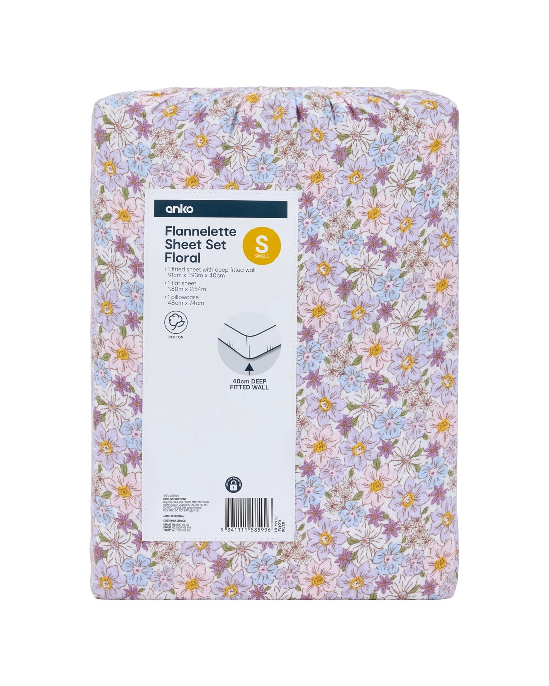 - Includes 1 x fitted sheet with deep fitted wall, 1 x flat sheet and 1 x pillowcase