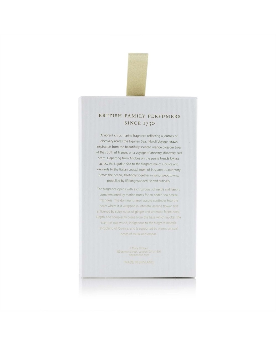 A citrus marine fragrance for women & men Conveys a journey of discovery across the Ligurian Sea in the Mediterranean Sea Crisp, bright, salty, breezy, warm & soothing Top notes of neroli, lemon & marine tones Heart notes of jasmine flower, ginger & fennel seed Base notes of oak wood, amber & musk Launched in 2019 Recommended for spring or summer wear