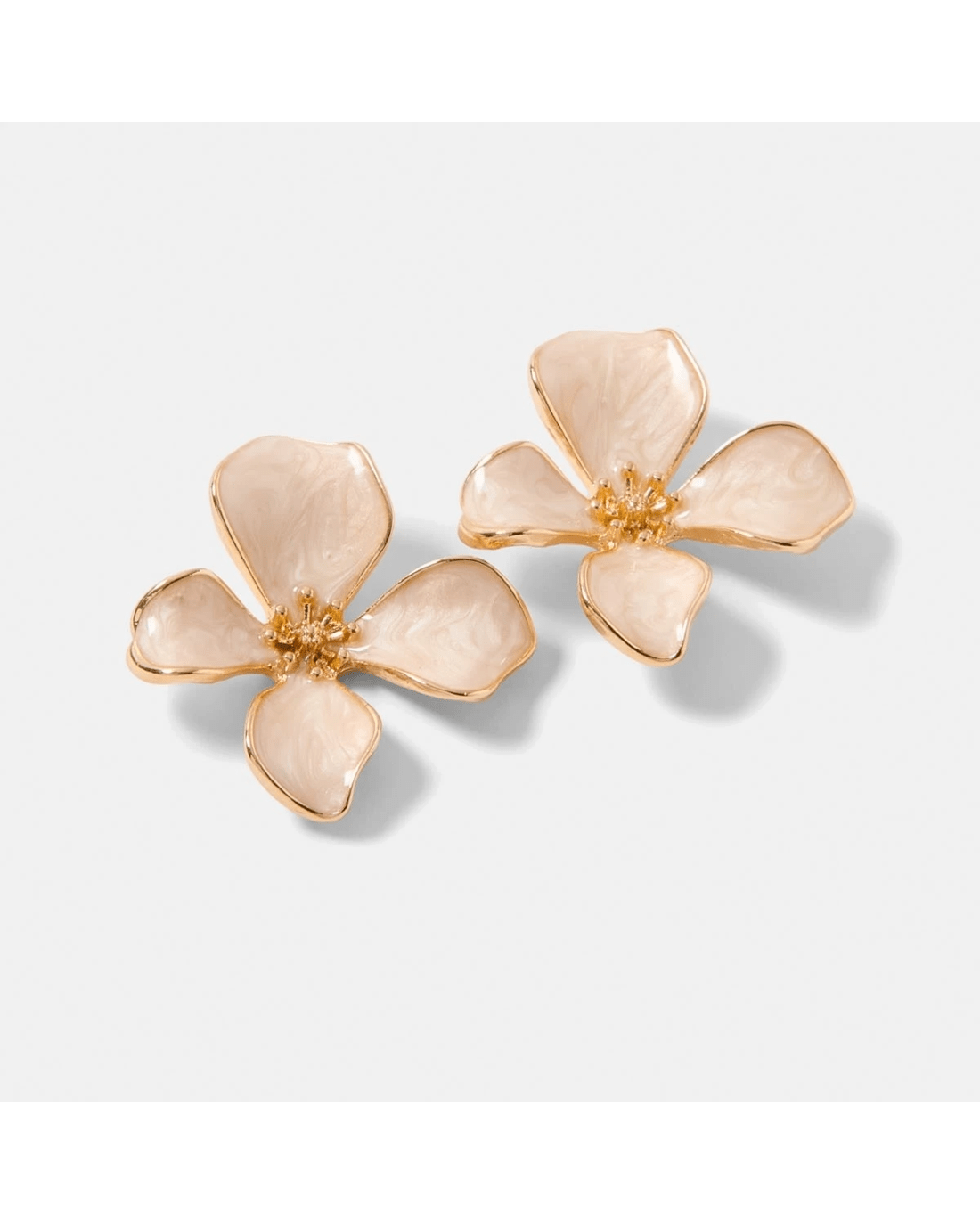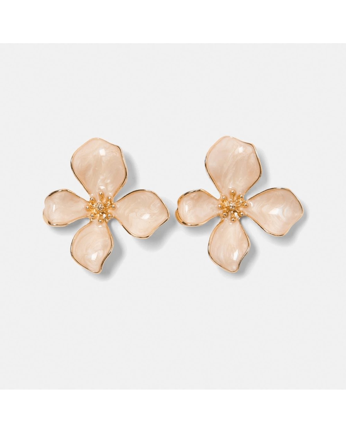 Flower Stud Earrings - Gold Tone