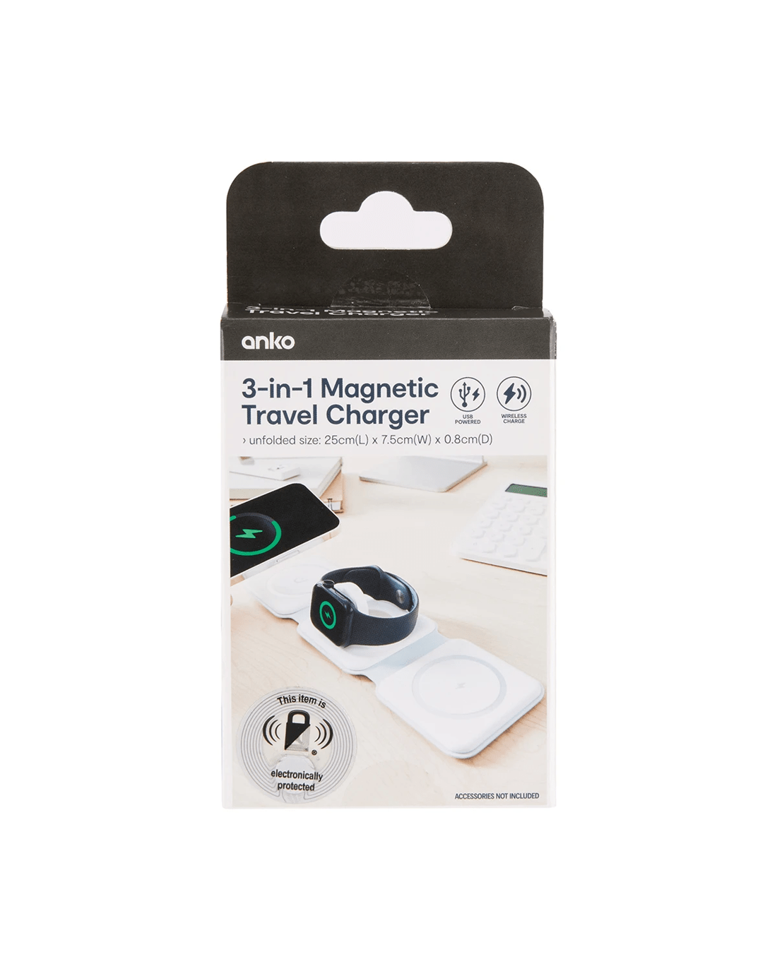 Sold by KmartFoldable 3-in-1 Magnetic Travel Charger - White