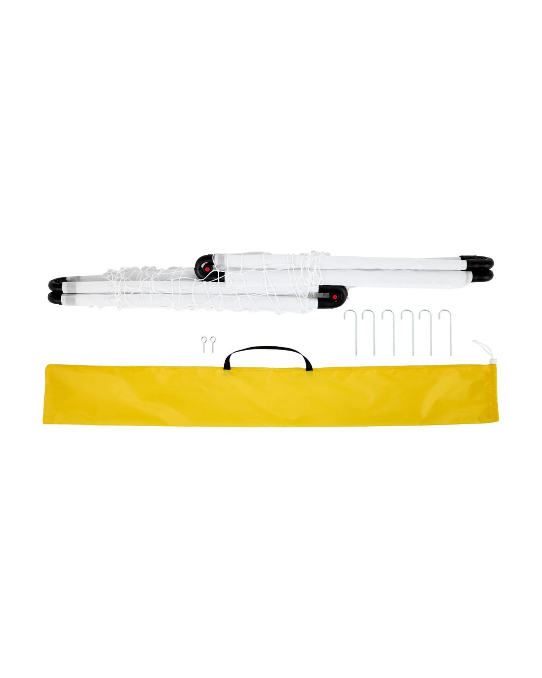 - Includes 1 x foldable goal, 1 x carry bag, 2 x eye bolts and 6 x ground pegs