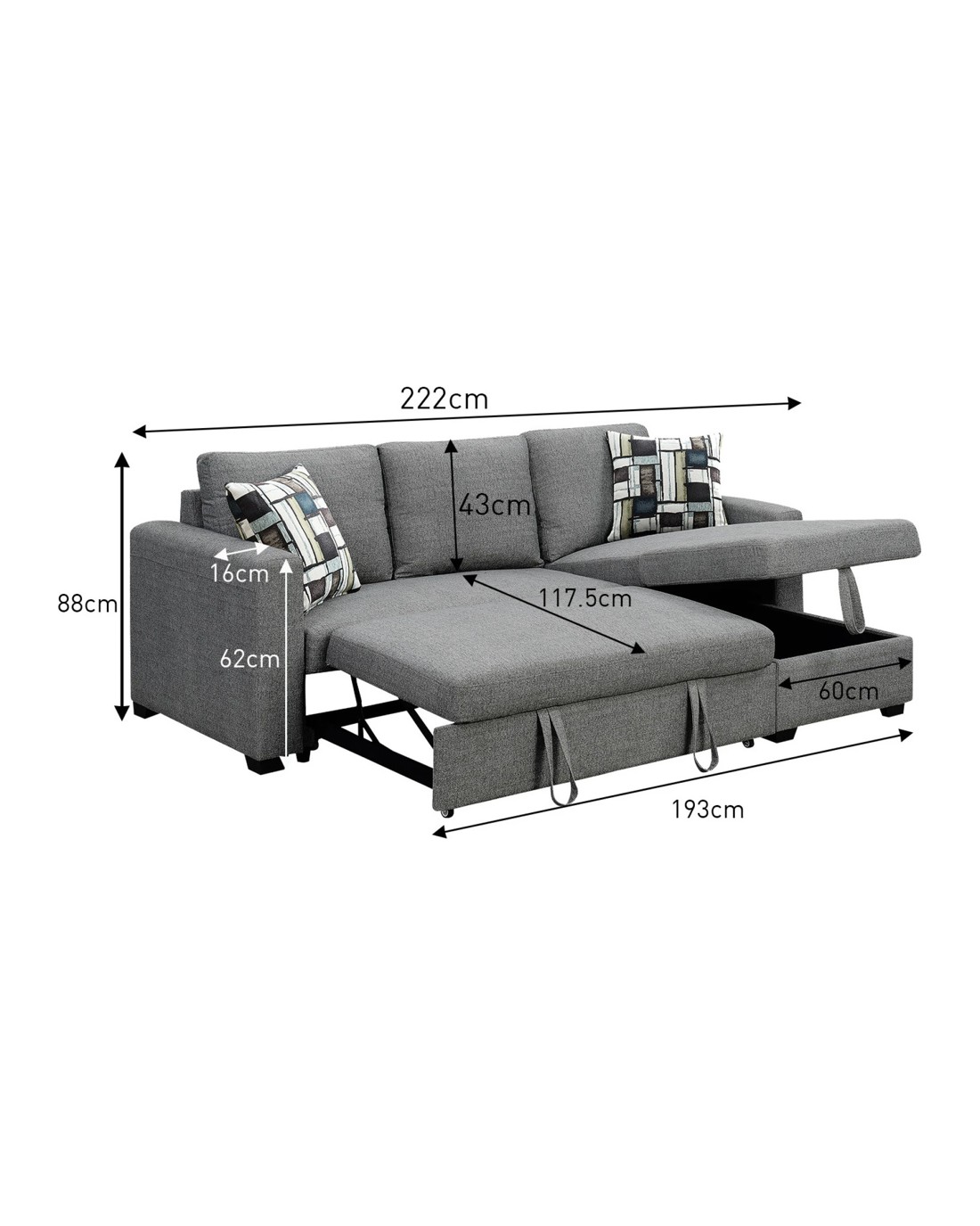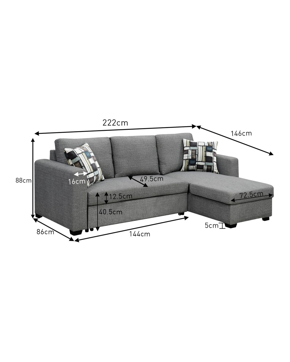 - Overall Size (W x D x H): 222 x 146 x 88cm