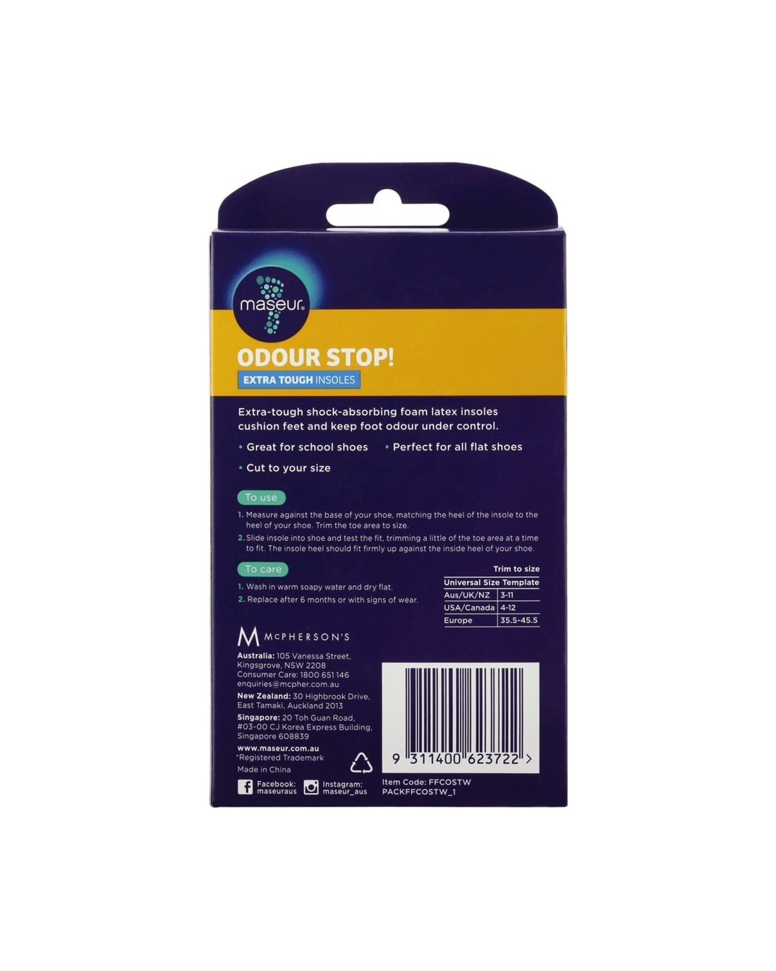 Footcare Odour Stop Extra Tough Insoles