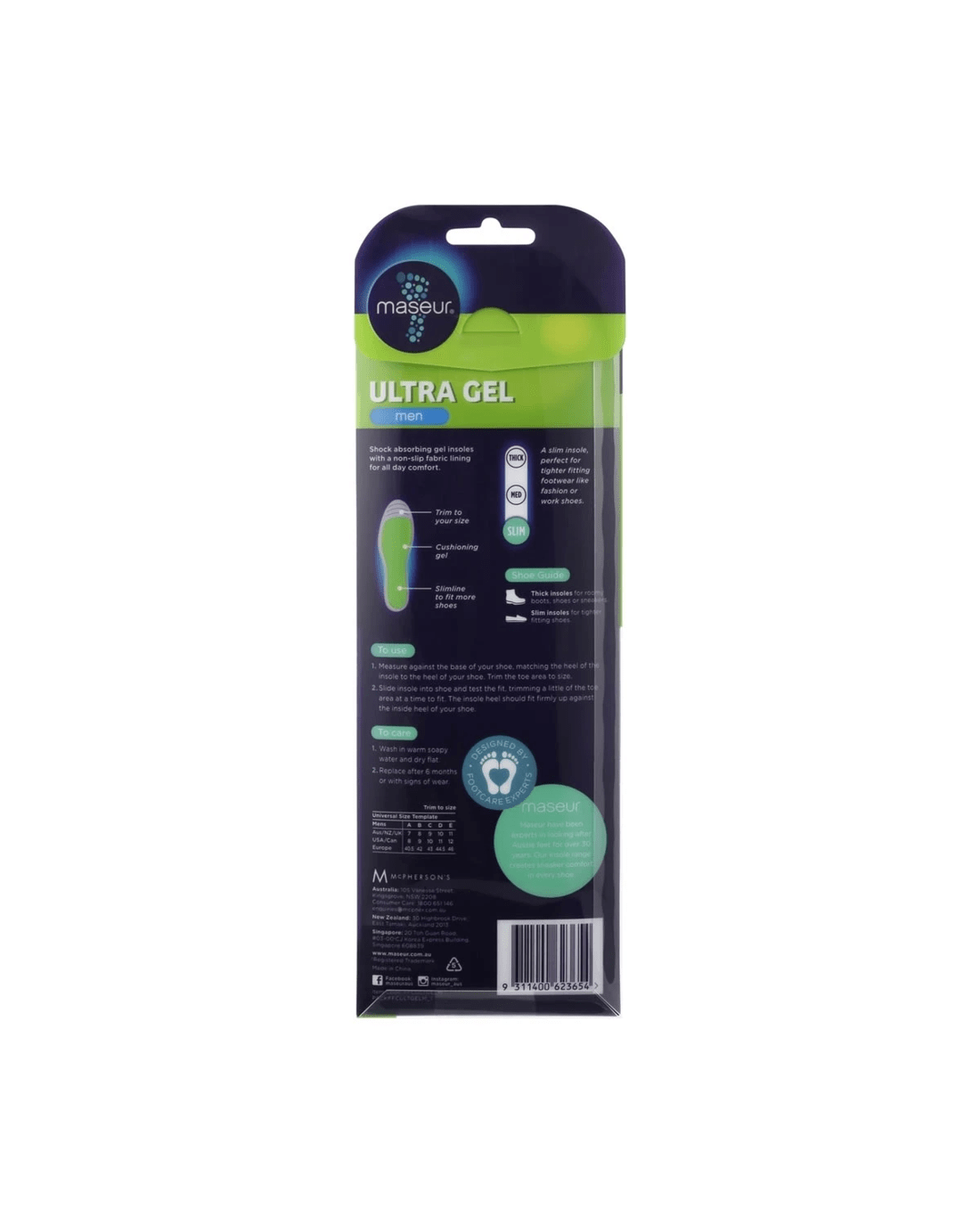 Footcare Ultra Gel Insoles - Green