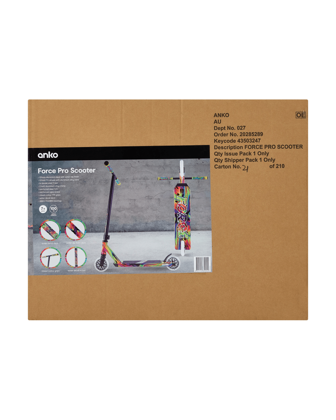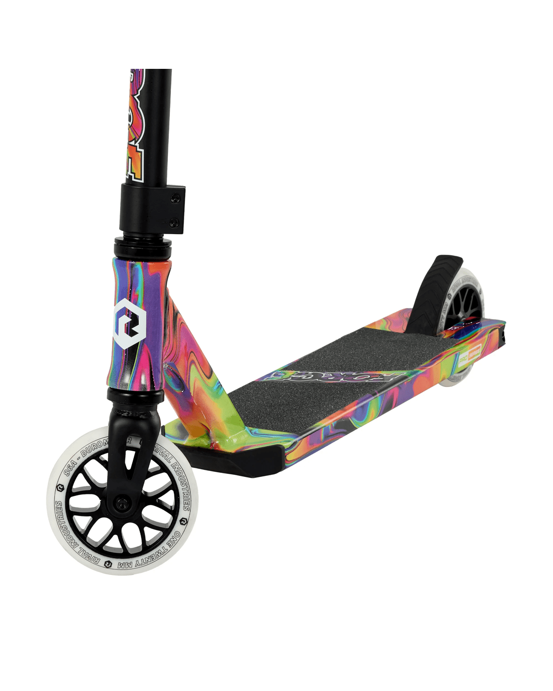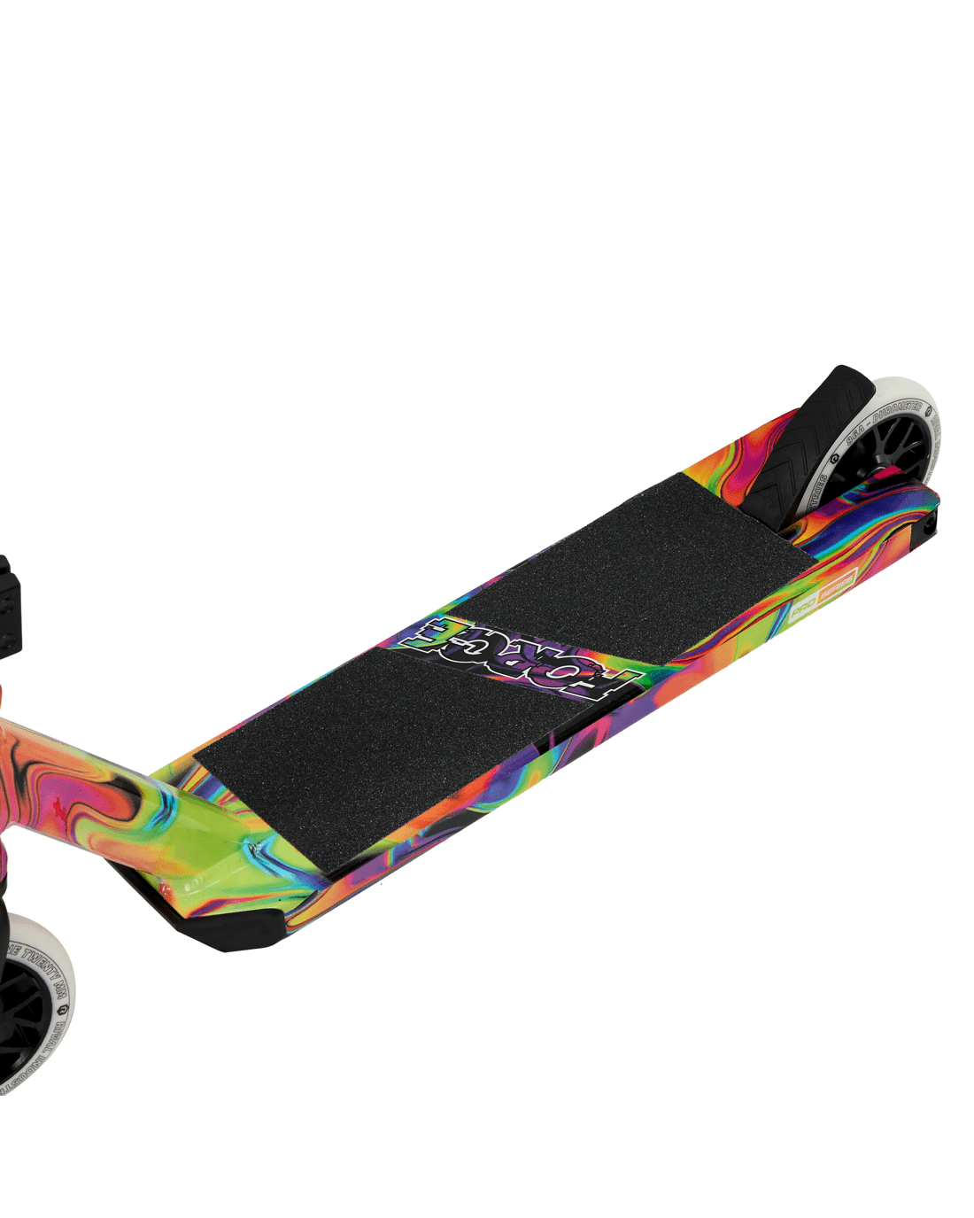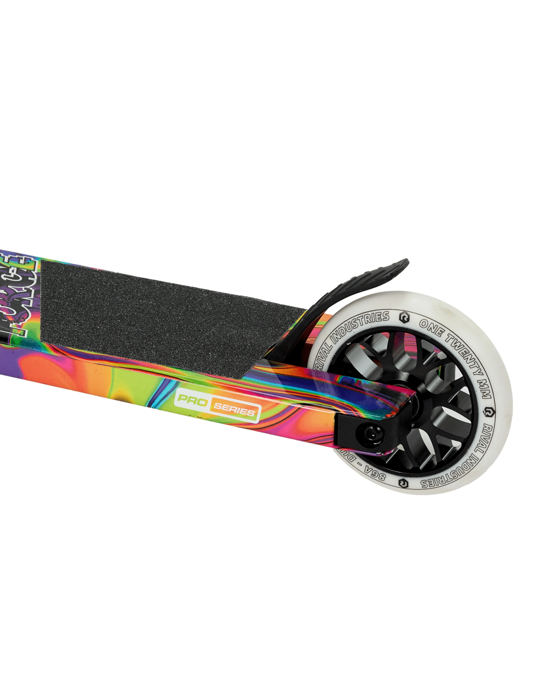 - This scooter features a 120mm aluminium deck with water-dip finish and a water decal on bar