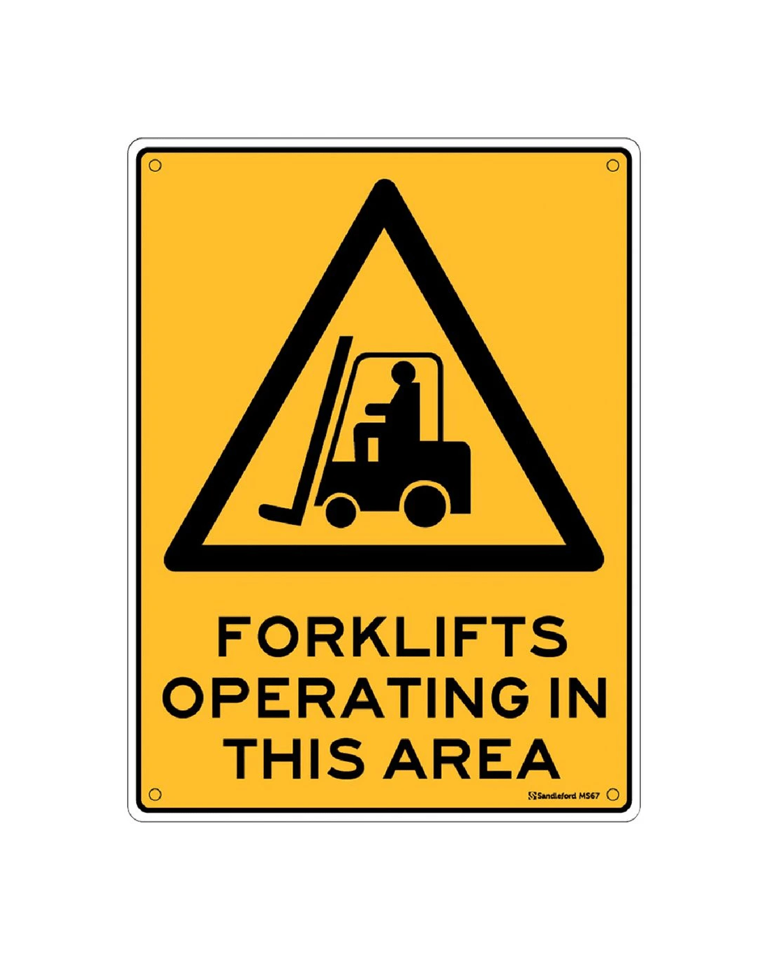 The Sandleford Forklift Sign warns people that they are entering a worksite with forklifts in operation. The polypropylene construction means it can be used indoors or outdoors.