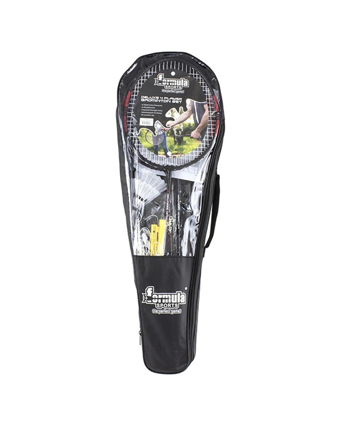 The Formula Sports Badminton 4 Player Deluxe Set has everything you need to set up a game with you and your friends. Perfect for the backyard, park or school yard - get active with badminton!