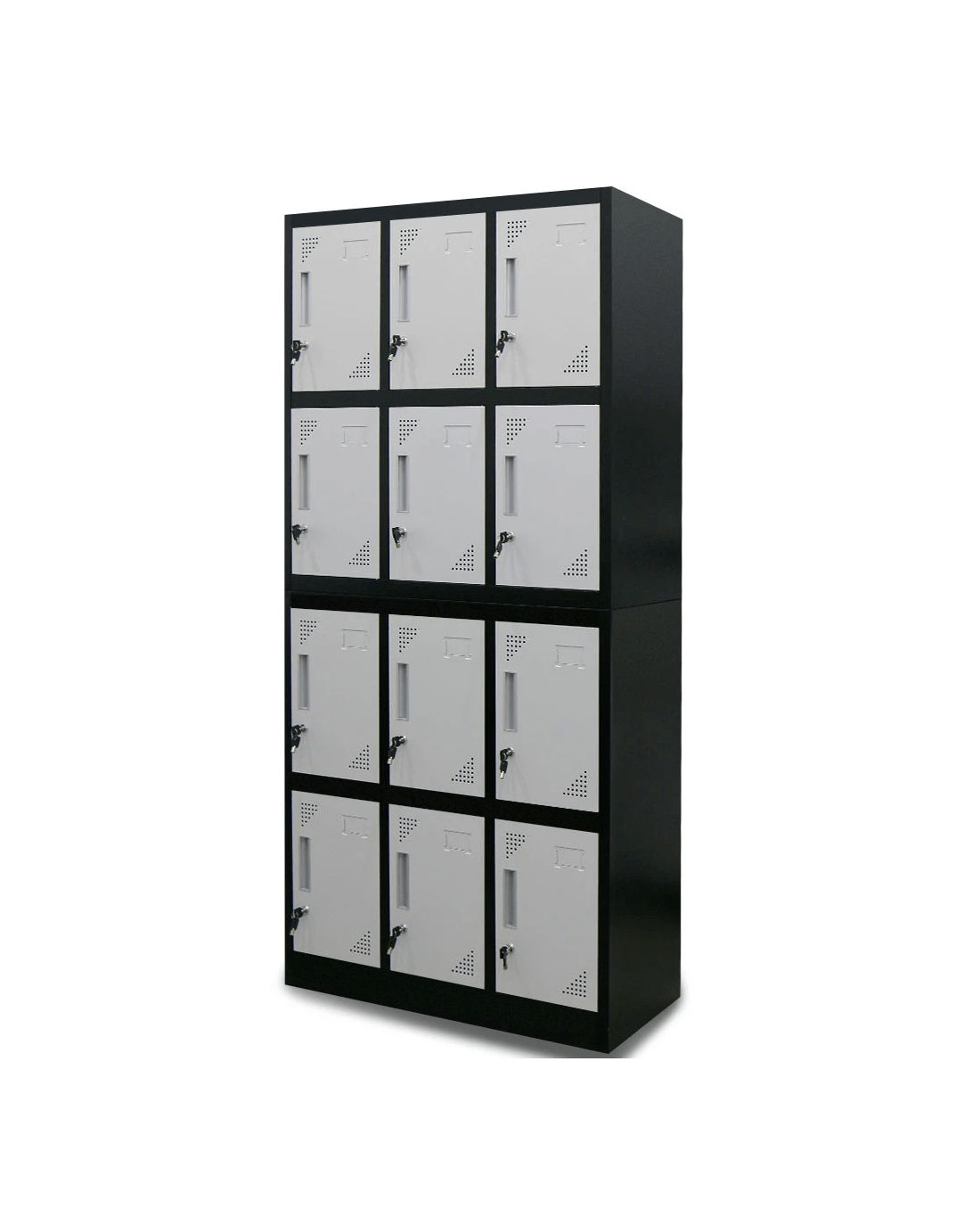 Built tough, the FORTIAâ„¢ 12 Door Locker has been constructed from solid cold rolled steel. Powder-coated in two-tone black and grey, this 12 Door Locker system combines sleek design with quality construction.