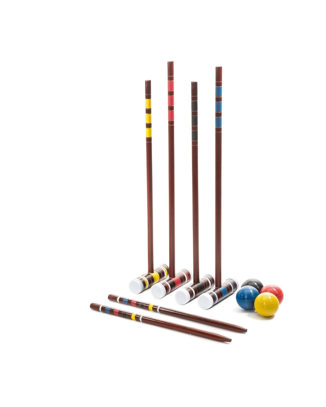 • MALLETS: include (2) 24in colored wooden handles with wooden heads and (2) 26in colored wooden handles with wooden heads that coordinate with the balls