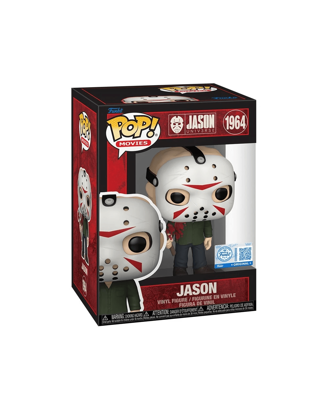 This Pop! Vinyl figure showcases Jason in his classic form, wielding an axe with chilling intent. His tattered clothing, iconic mask, and bloodied weapon are rendered in stylised detail, offering a compact yet instantly recognisable rendition of the horror icon. Perfect for display, it adds a sinister slash of nostalgia to any collector's shelf.