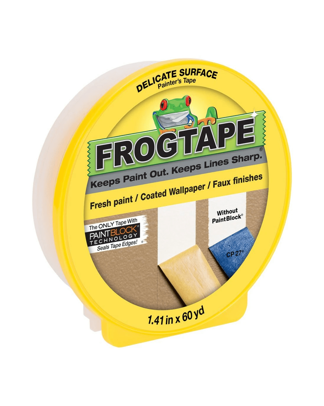 FrogTape Delicate Surface Painter’s Tape is a premium washi tape designed to deliver ultra-sharp paint lines while protecting delicate surfaces like freshly painted walls and coated wallpaper. It uses PaintBlock technology and a low-adhesion formula to ensure clean removal and professional results, making it ideal for decorative painting projects.