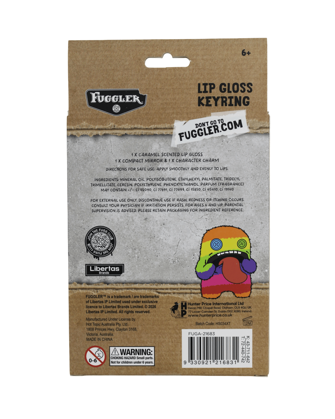 The Fuggler Lip Gloss Keychain - Rainbow is here to keep your pout poppin’ and your personality shining. Inspired by the weirdly wonderful world of Fuggler, this gloss is equal parts glam and giggles — because your lip shine should never be boring.