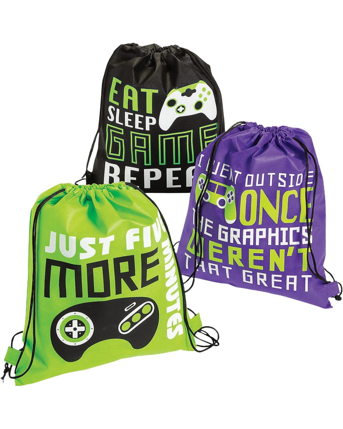 Fun Express Gamer Drawstring Bags Pack of 12