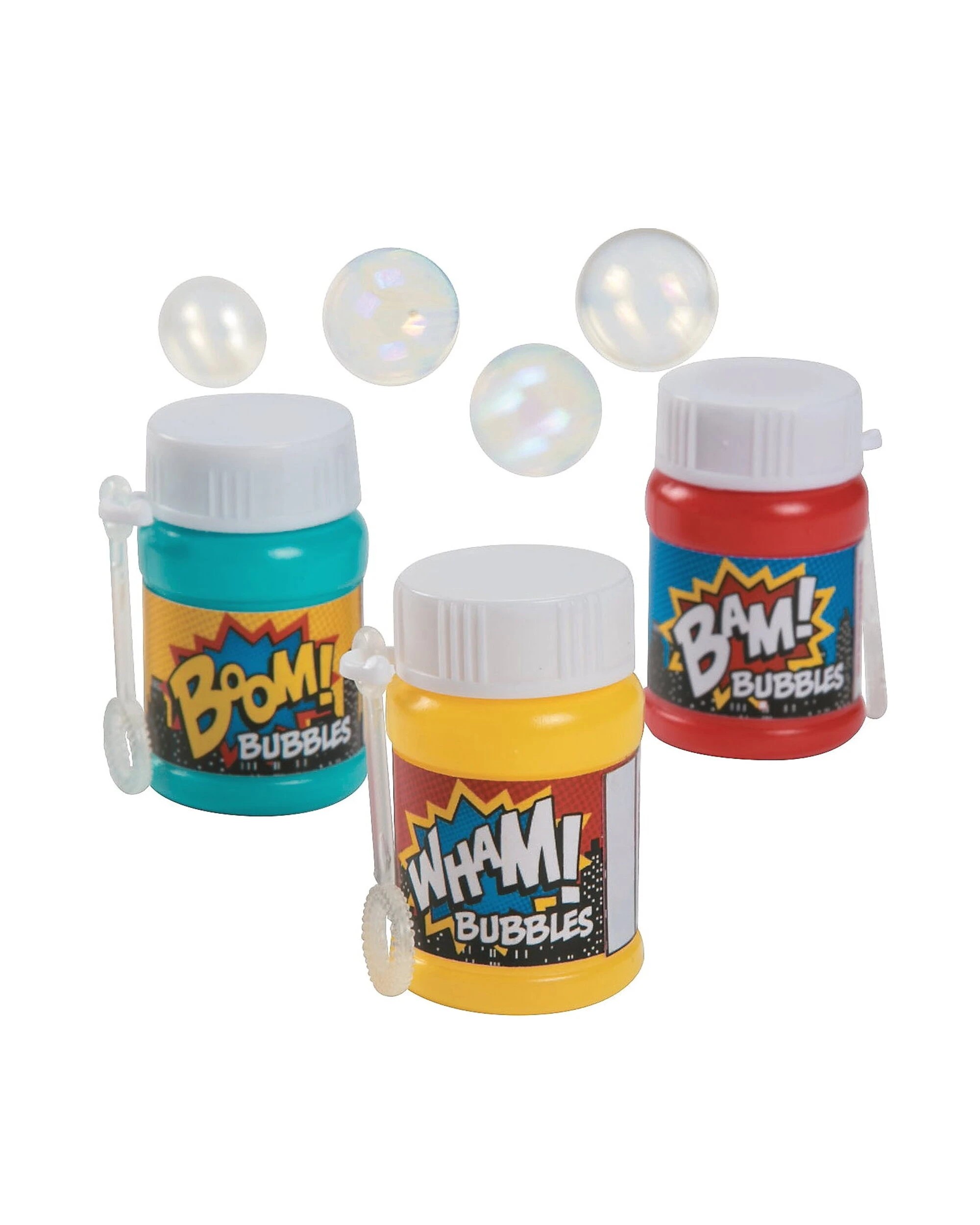 Fun Express Superhero Slogan Bubble Bottles Pack of 24