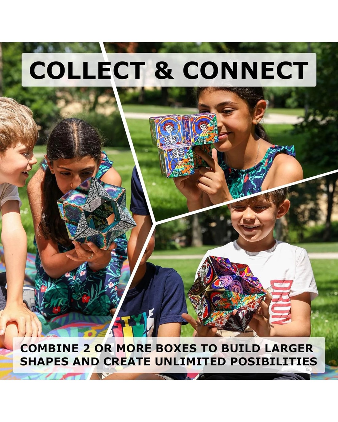 Unlike other puzzle box toys that turn out disappointing & dull, the patented, award-winning Shashibo fidget box features 36 rare earth magnets for an innovative design that transforms into over 70 shapes. Fits comfortably in the hand for hours of mind-challenging fun, stimulate the senses with unlimited creative possibility! Can you master the Shape-Shifting Box? Nothing compares to the quality & unique design of the Shashibo, durably constructed of premium injection-mold plastic, 36 rare earth magnets, and a tear-proof, matte or high-gloss surface. Each magnetic puzzle features 4 unique, artistic patterns of vibrant, mesmerizing artwork, for an ever-changing array of beauty at your fingertips. Collect & Connect: With the strong internal magnet system of our fidget puzzle boxes, you can connect multiple magnetic cubes to build even larger structures and sculptures - for the ultimate satisfying magnetic fidget toy and brain teaser. Collect all 12 designs to create vibrantly patterned, spellbinding 3D art! A Transformational Gift: Our fidget magnet cubes make great sensory stimulation puzzle gifts and SEAM and STEM toy gifts for all ages. With every satisfying click, our shape shifting puzzle box's calming, therapeutic effect soothes away stress & nerves. Ages 8 +