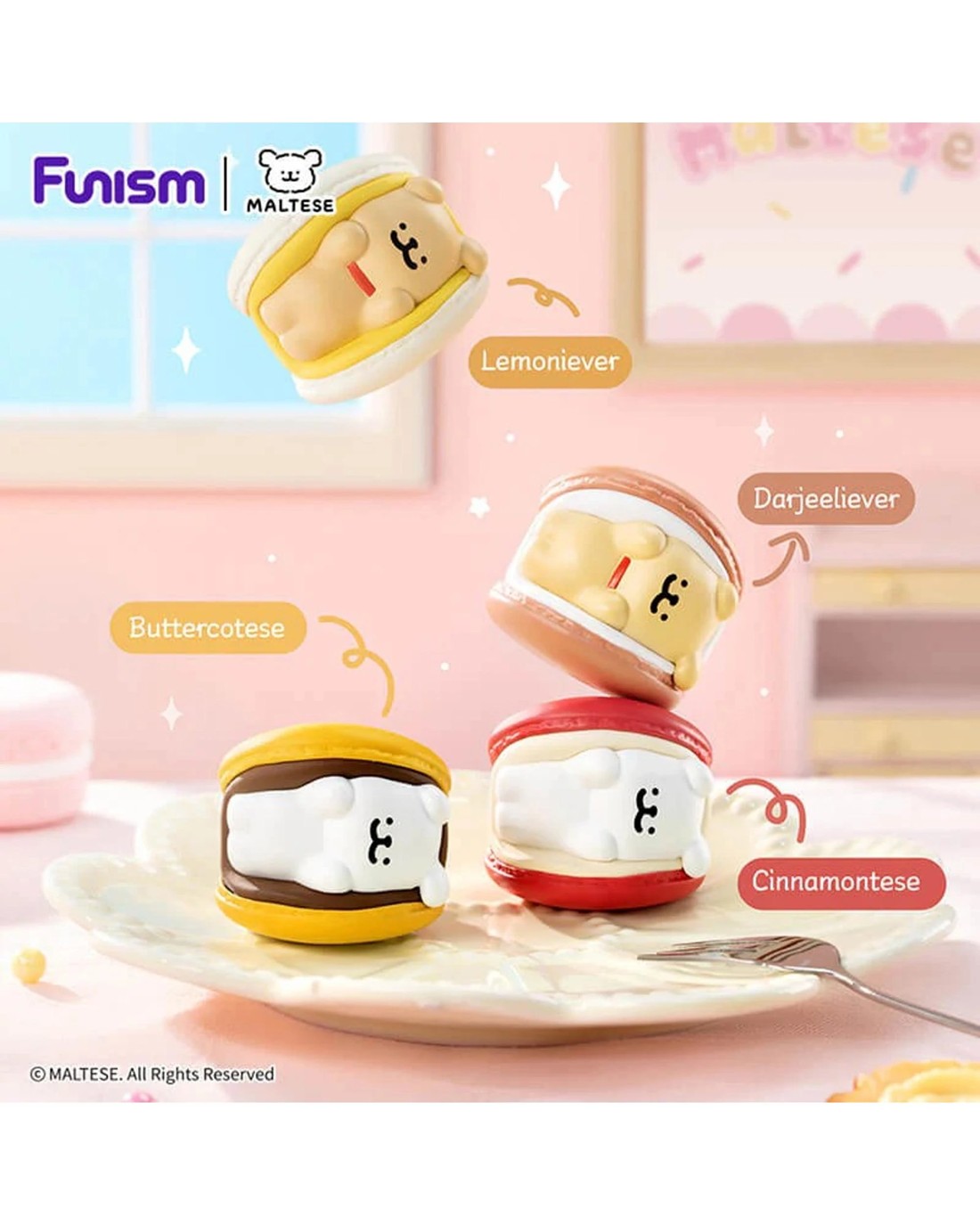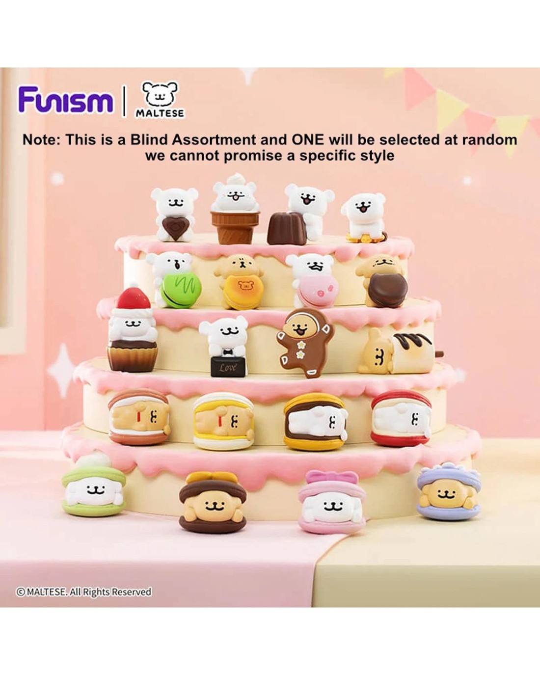 Maltese Sweet Box depicts the iconic adorable pups with delicious treats like macarons, chocolates, and gingerbread. Theres 20 styles to collect (3 per box): 16 basic styles (9/144) 4 hidden styles (1/144) Materials: PVC/ABSSize: Approx. Height 35-58 mm Ages 15 +Contents