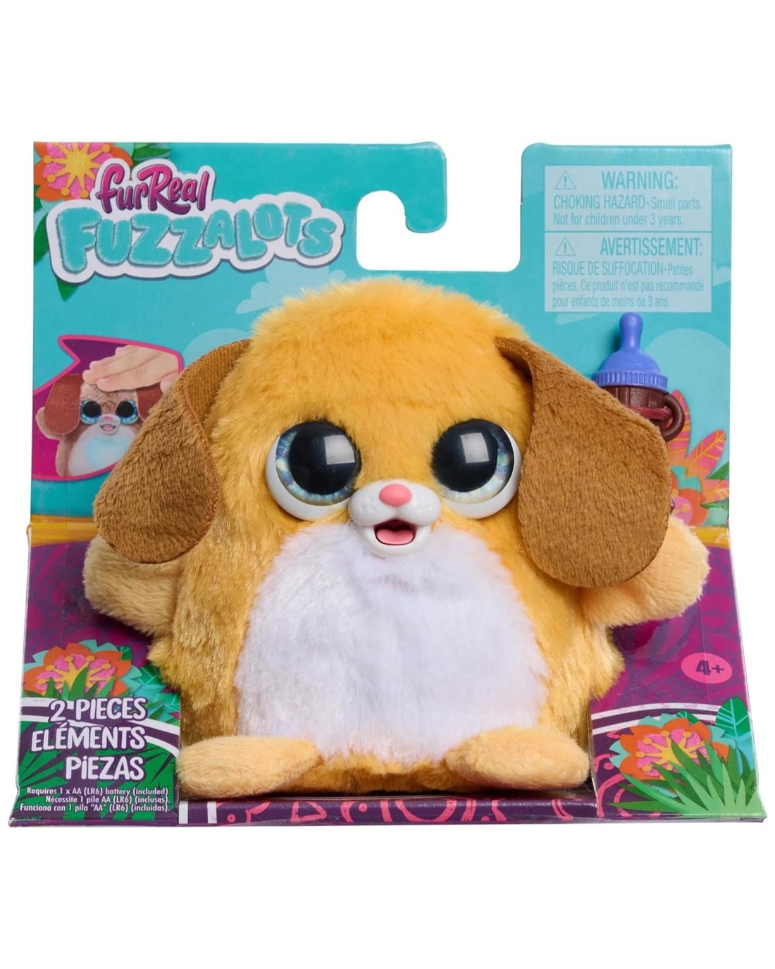 Learn to care for a pet's every need, based on light colours and sounds with the furReal Fuzz-A-Lots Interactive Toy. This super cute pooch is sized at 10cm (3.75-inches) tall, is covered in velvety soft tan and white fur, and features over 25 distinct sounds and reactions. To care for this pup, just watch and listen. When hungry or thirsty, this pup will make excited yips and yowls every time its belly glows red. Give the puppy a bottle and get rewarded with happy sound effects. Later, if this pup becomes sad, scared, or cranky, its tummy will glow blue. Kids can make pets feel better with a cuddle or sweet head scratch. furReal pets make sweet additions to any kid's collection of stuffed animals and other furReal Pets (each sold separately). Ages 4 +