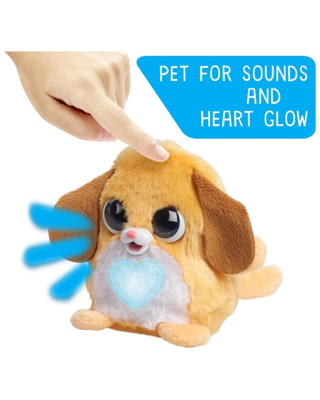 - Pet Care On-The-Go: This adorable 10cm (3.75-inch) tall pup features super soft tan and white fur, big eyes, a belly that lights up, and over 25 distinct sounds and reactions.