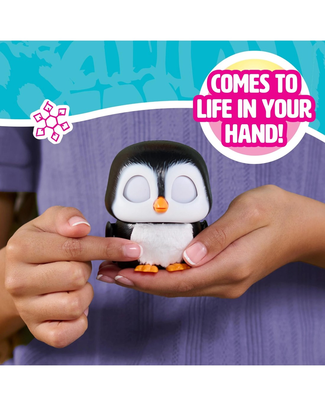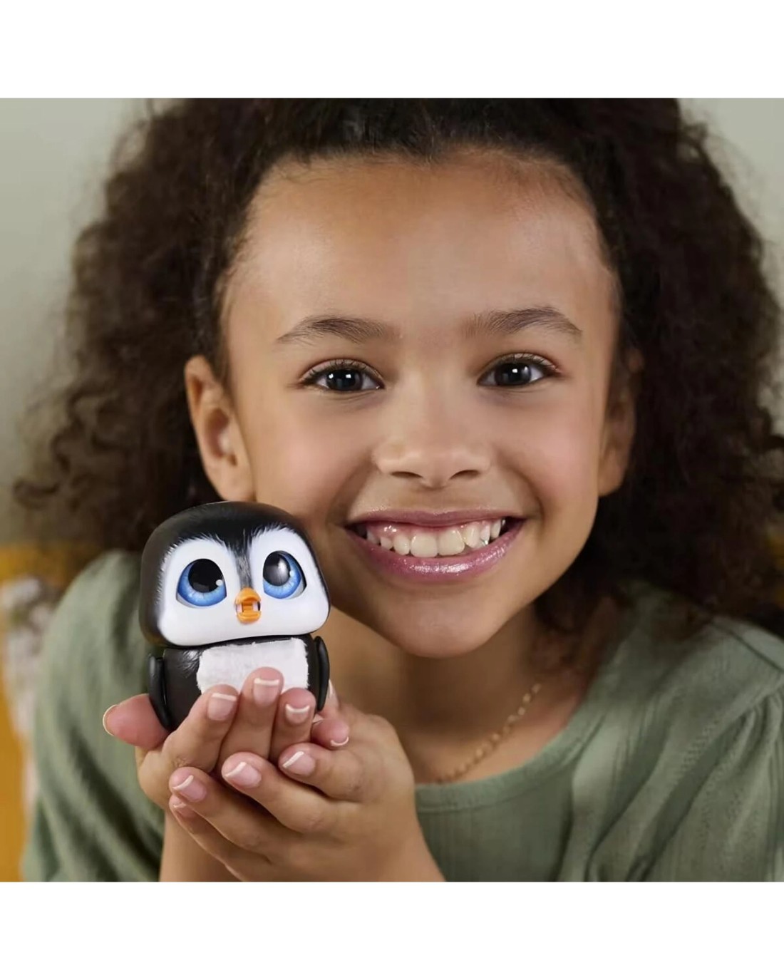 furReal Handfuls Shivers the Penguin interactive toy is a chilly, yet warm-hearted guy in need of a friend to help warm him up. Place him in your palm, then watch and listen as he becomes more playful. He responds with over 50 combinations of sound and movements including phrases, sound effects, eye blinks, and head, mouth, and feet movements. Pet his head and soft, plush tummy to provide warmth and comfort. Feed him by petting his belly. He'll respond with satisfied sounds. After a meal, take this 3.5-inch (9cm) penguin toy on the go. Tuck him in a jacket pocket, backpack, or tote for anytime snuggles. He'll deliver warm affection during recess, sleepovers, and at home. Ages 4 +