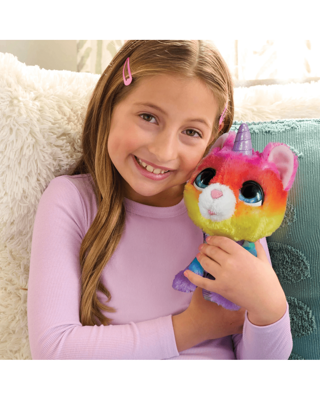 • Animal attraction: This adorable mythic creature has super-soft ombre rainbow fur, sparkly blue eyes and a cute purple collar.