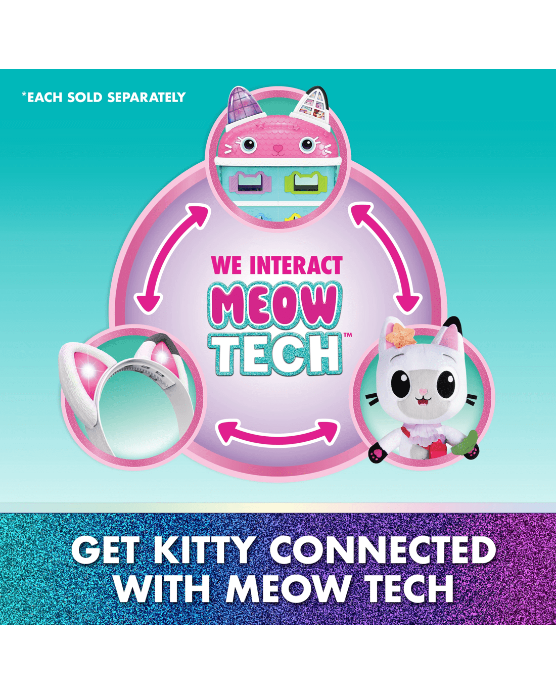 - Stay Kitty Connected: Gabby’s Interactive Dollhouse, Interactive Ears Headband & Interactive Pandy Paws feature Meow Tech, linking 2-3 of them together for interactive play (each sold separately)