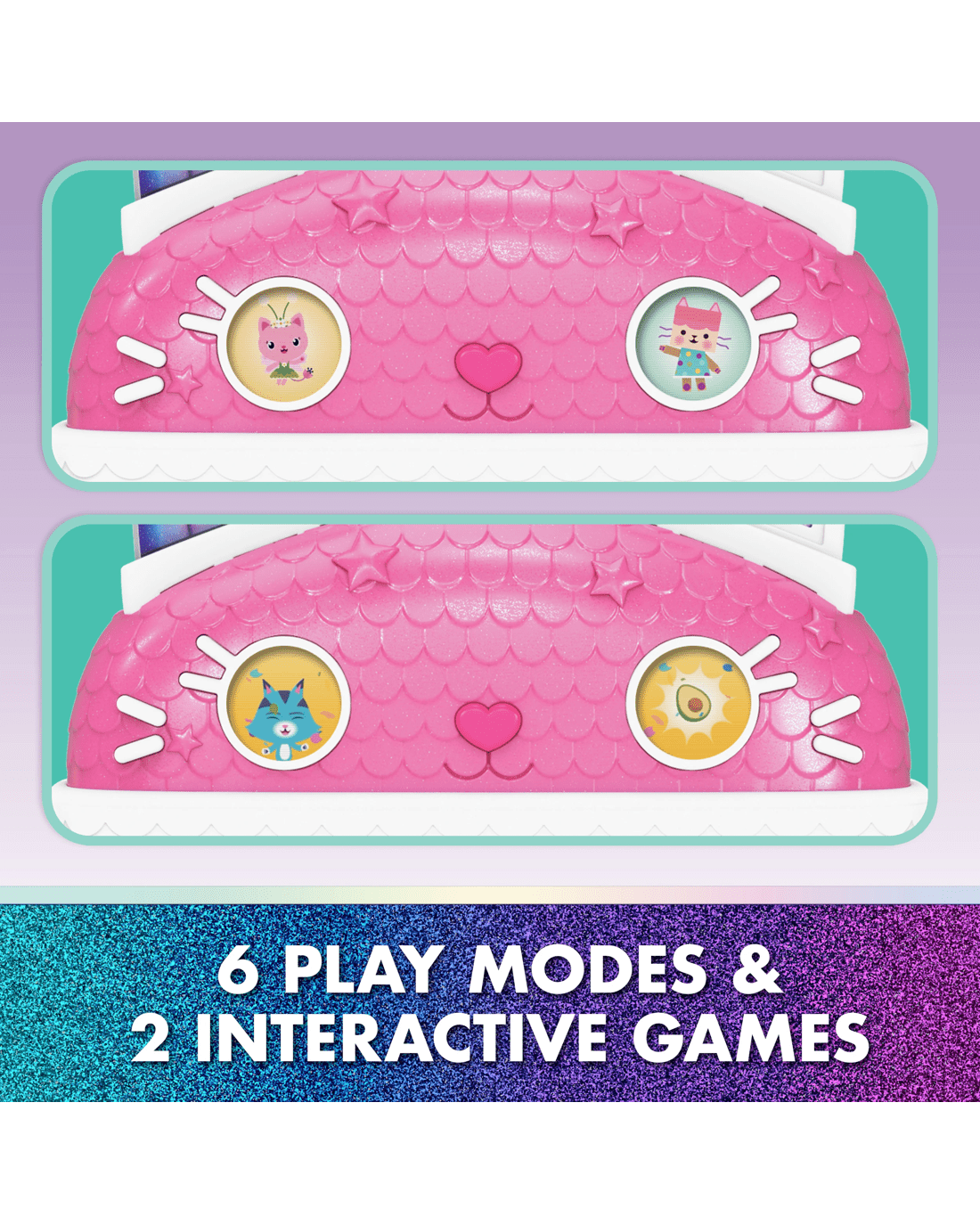 - Interactive Playtime: 60+ animations & 6 play modes, including 2 games—Cat of the Day & Find it— Gabby movie sound fx & animations activated by nose-pushes, Paw Bump Magic buttons & elevator rides