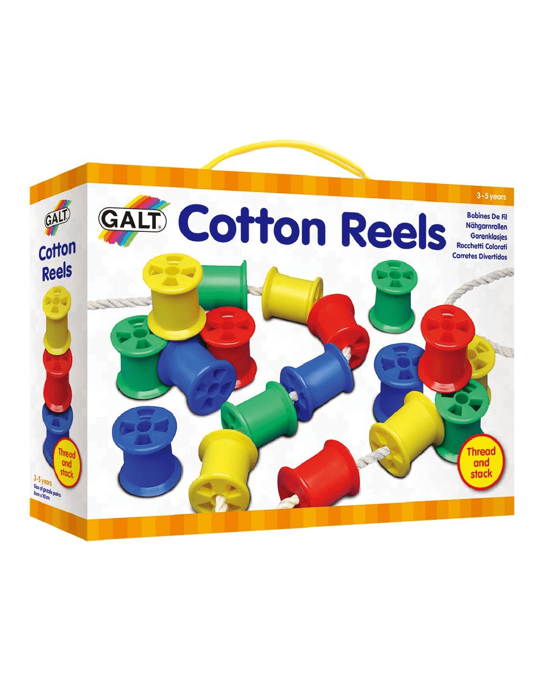 This Galt Cotton Reels Set comes with a variety of cotton reels in bright, vibrant colours which can be used for an assortment of sorting, stacking and threading activities. The set will help to build fine motor skills, enhance colour recognition and more.