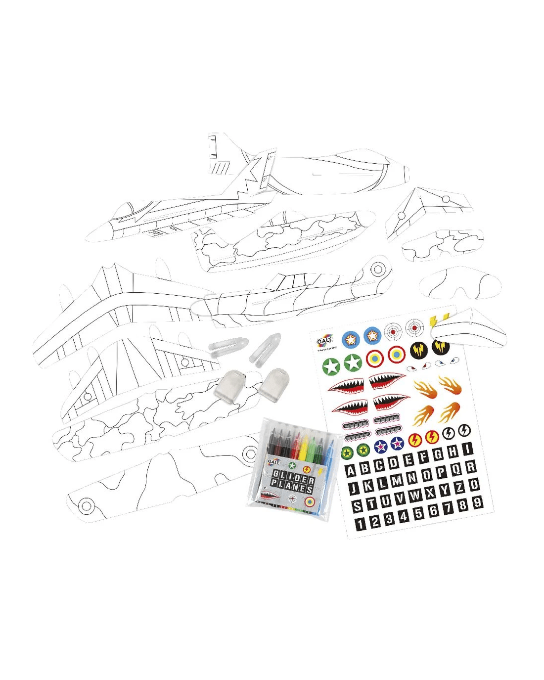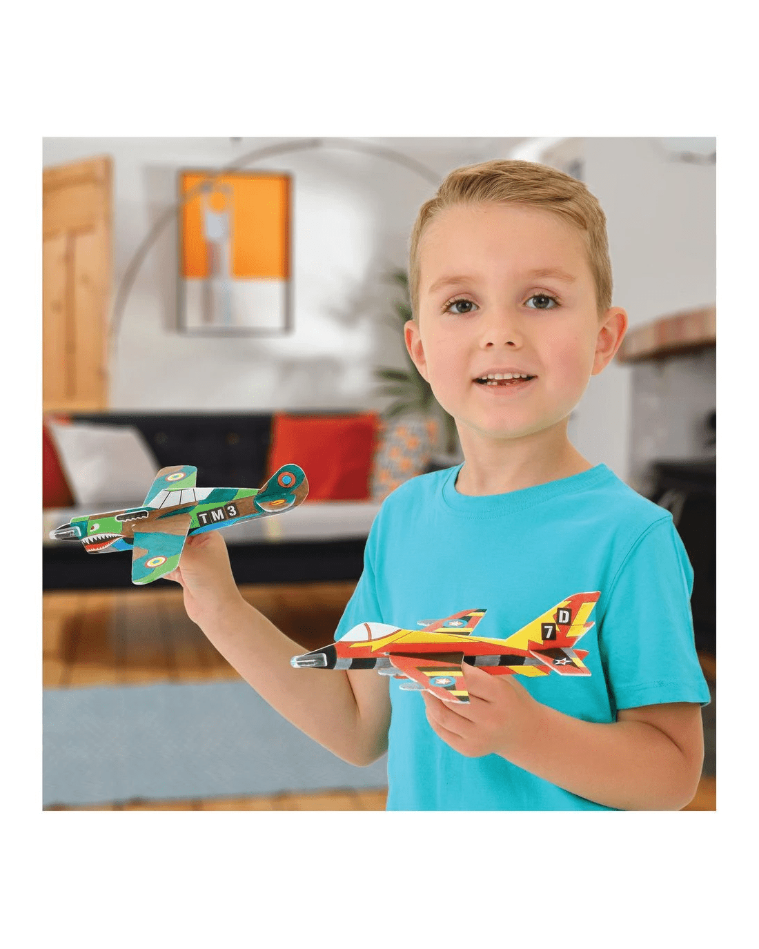 This Galt Glider Planes Kit comes with foam pieces so you can build up to 4 planes. Colour in the printed designs, add a weight for balance, customise the stickers and watch them fly.