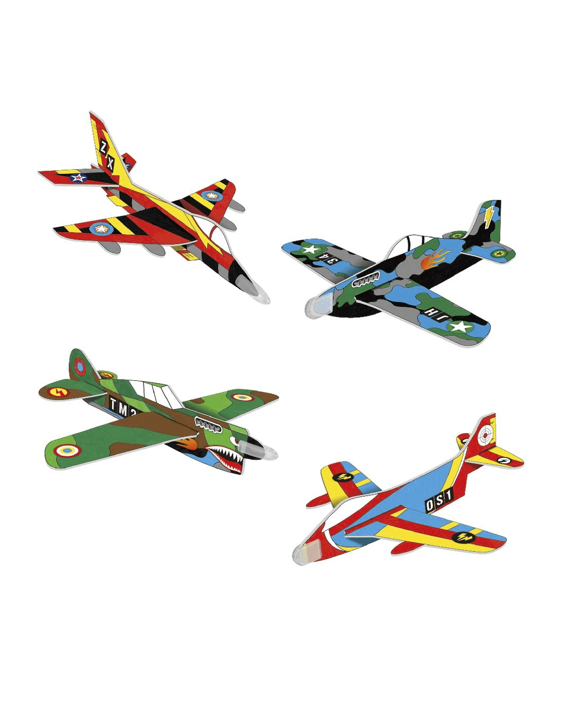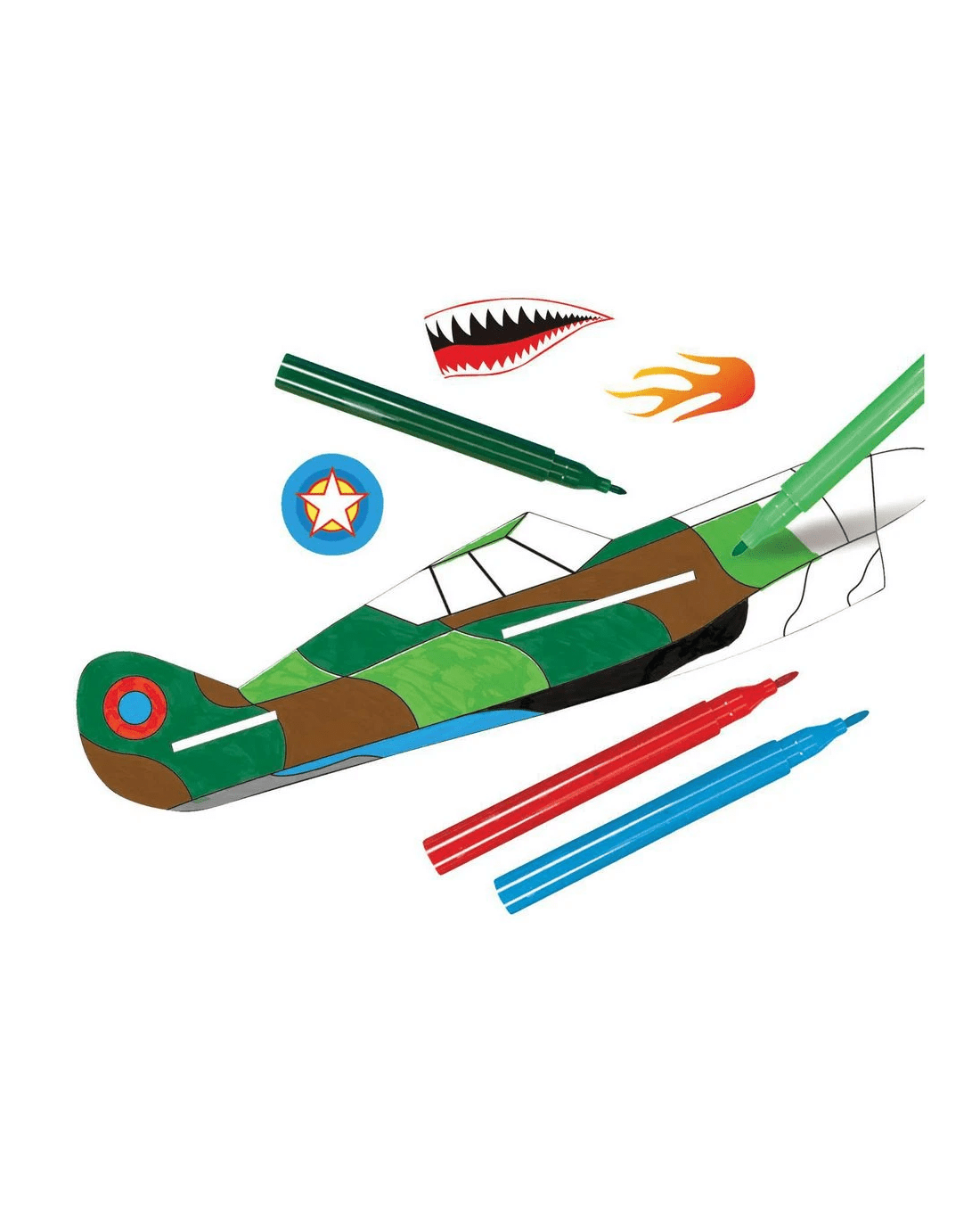 - This kit includes printed foam pieces to make 4 planes, 4 nose weights, 8 washable fibre pens, stickers and a guide.