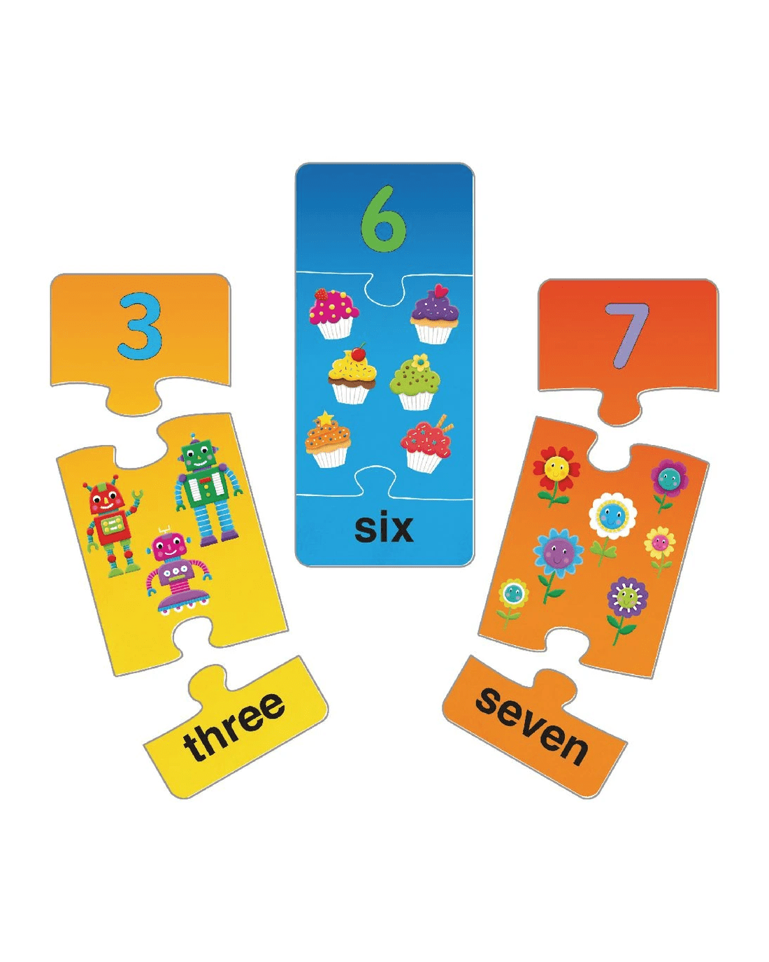 This Galt Puzzle set includes 10 3 piece puzzles each featuring a large number, pictures and the number written as a word. Plus, only the correct pieces will fit together helping you to get it right every time.