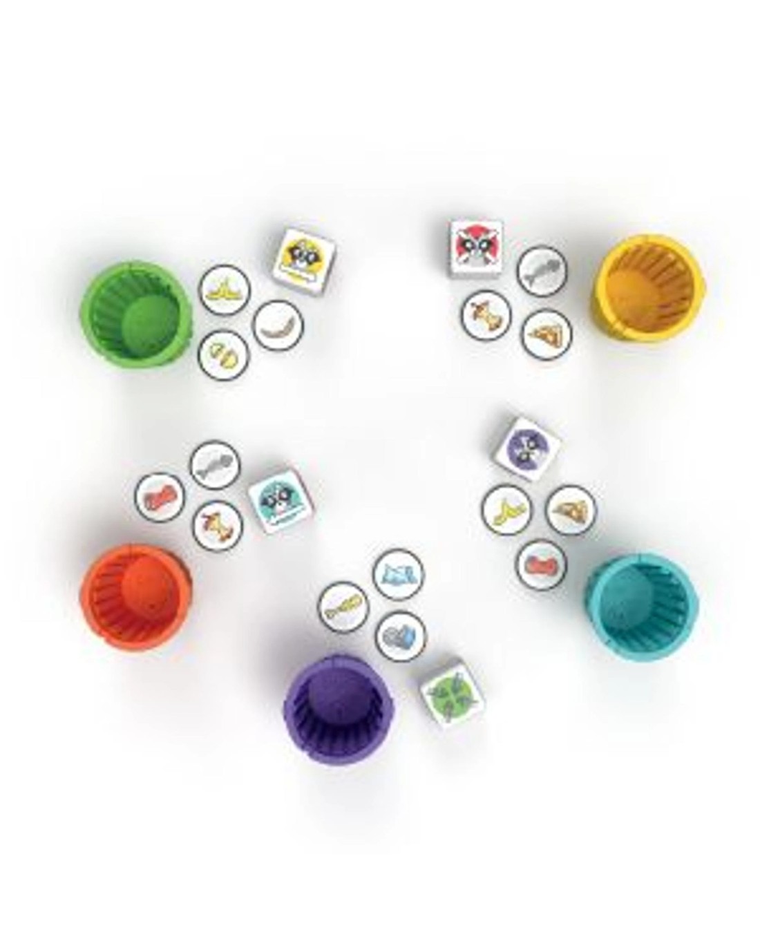 • HIDE YOUR ROLL, MAKE YOUR CALL, AND KEEP A POKER FACE: Each player secretly rolls their raccoon die under their garbage can and decides whether to tell the truth or try to sneak their action of choice. Other players must choose whether to accept their move or call their bluff—get caught lying, and you face consequences!