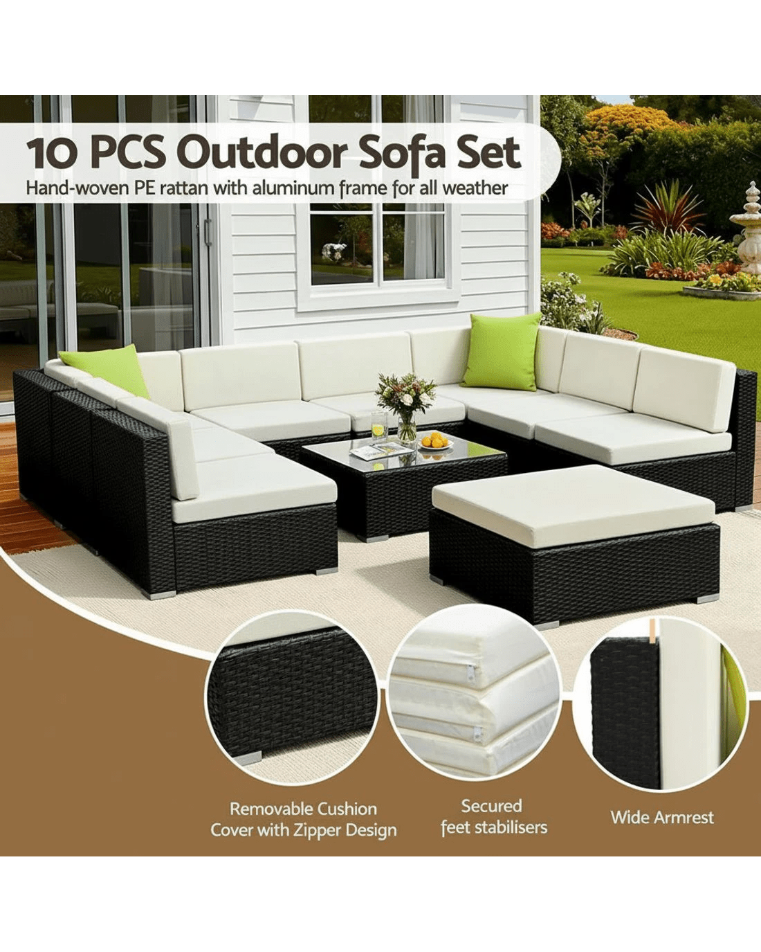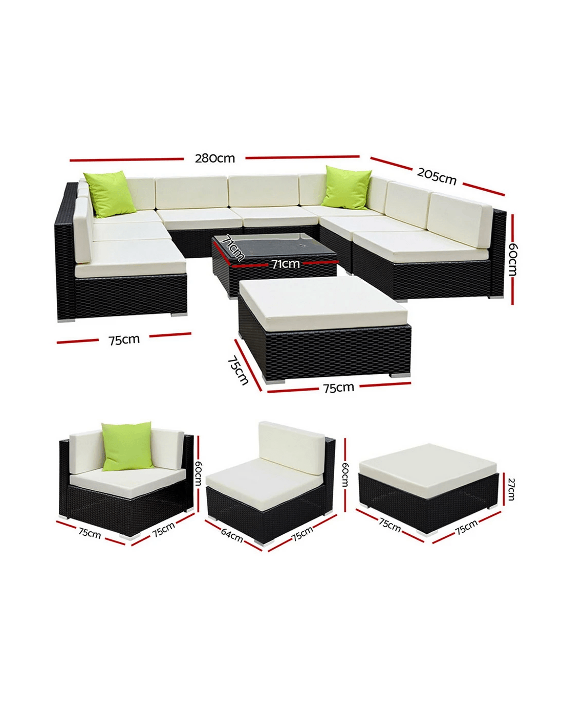 Leisure come easy with our Gardeon Outdoor Furniture Set. Our outdoor set promises luxurious and spacious comfort matched with long-term durability and robust use in any weather condition. With its UV-resistant PE wicker handiwork and heavy-duty aluminium frame, the stylish outdoor set is made to last. The table also comes with a 5mm thick tempered glass top for safety. Not least, the seat covers can be removed for washing and the set also include a water-resistant storage cover.Sofas need to be stacked before using storage cover.