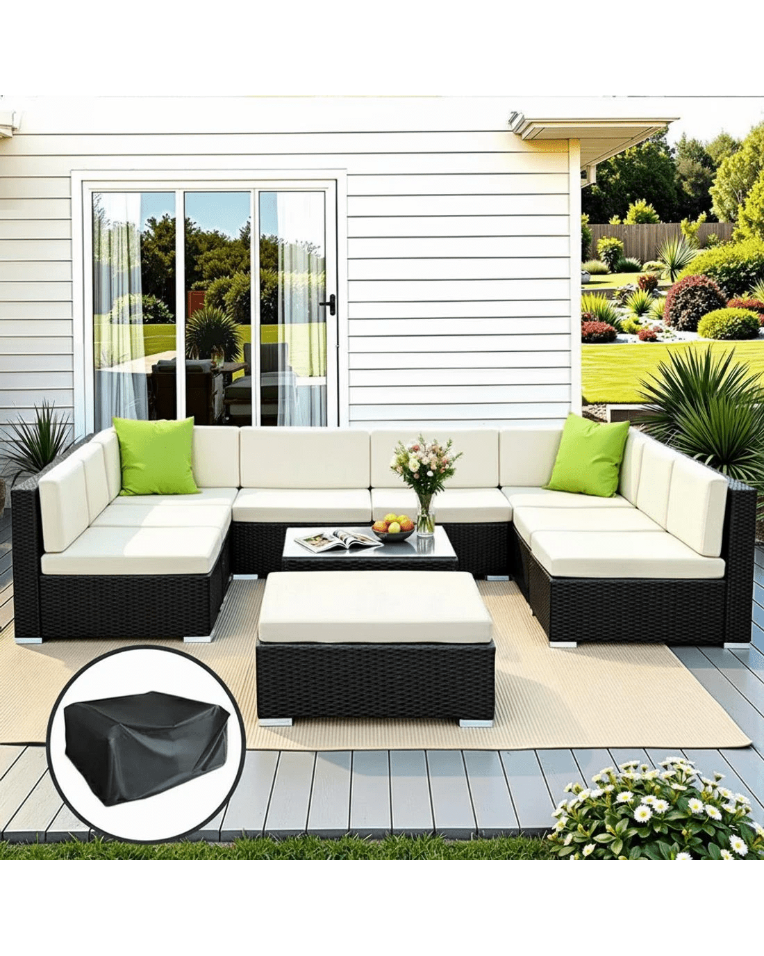 Sold by Aisle SixGardeon 10-Piece Outdoor Sofa Set Wicker Couch Lounge Setting Cover - Black