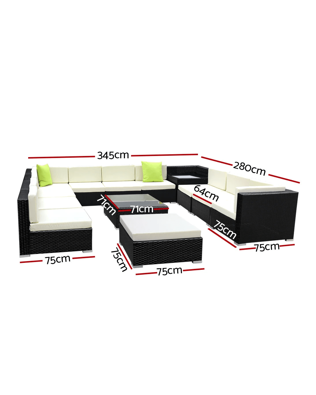 Sold by Aisle SixGardeon 13-Piece Outdoor Sofa Set Wicker Couch Lounge Setting 11 Seater - Black