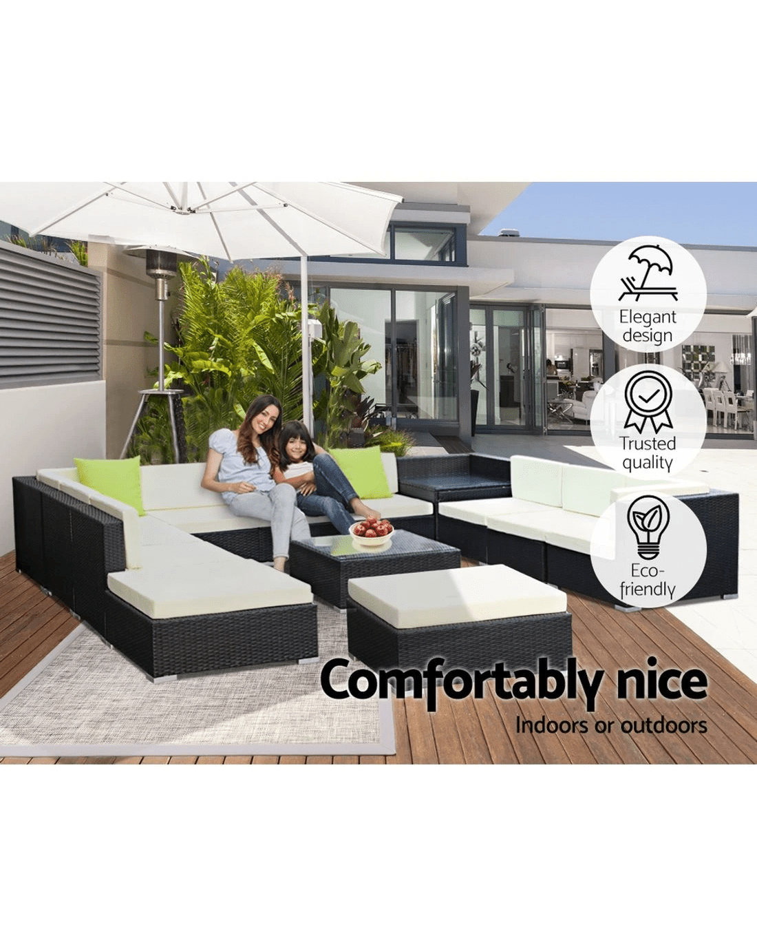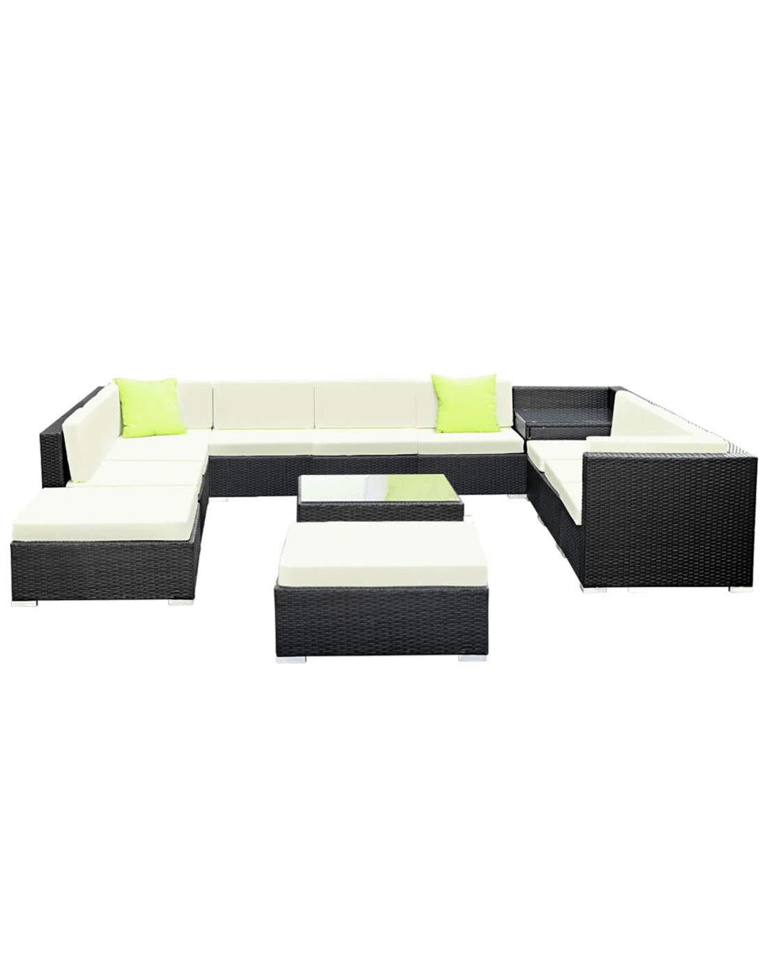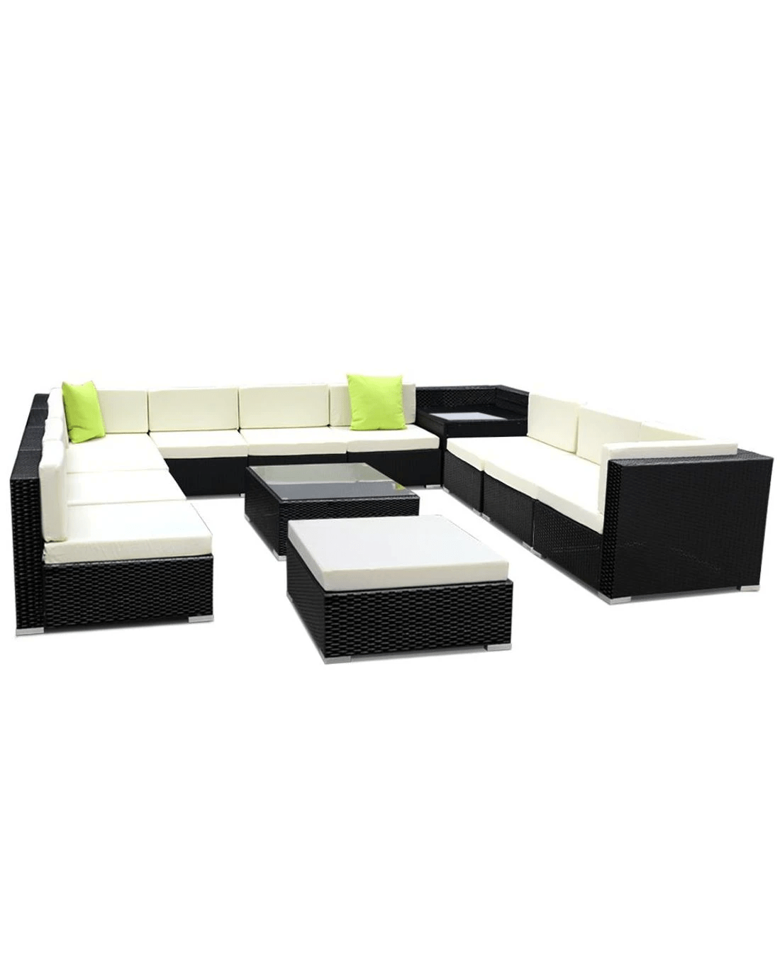 Leisure come easy with our Gardeon Outdoor Furniture Set. Our outdoor set promises luxurious and spacious comfort matched with long-term durability and robust use in any weather condition. With its UV-resistant PE wicker handiwork and heavy-duty aluminium frame, the stylish outdoor set is made to last. The table also comes with a 5mm thick tempered glass top for safety while a corner table add a handy convenience. Not least, the seat covers can be removed for washing and the set also include a water-resistant storage cover. Sofas need to be stacked before using storage cover.