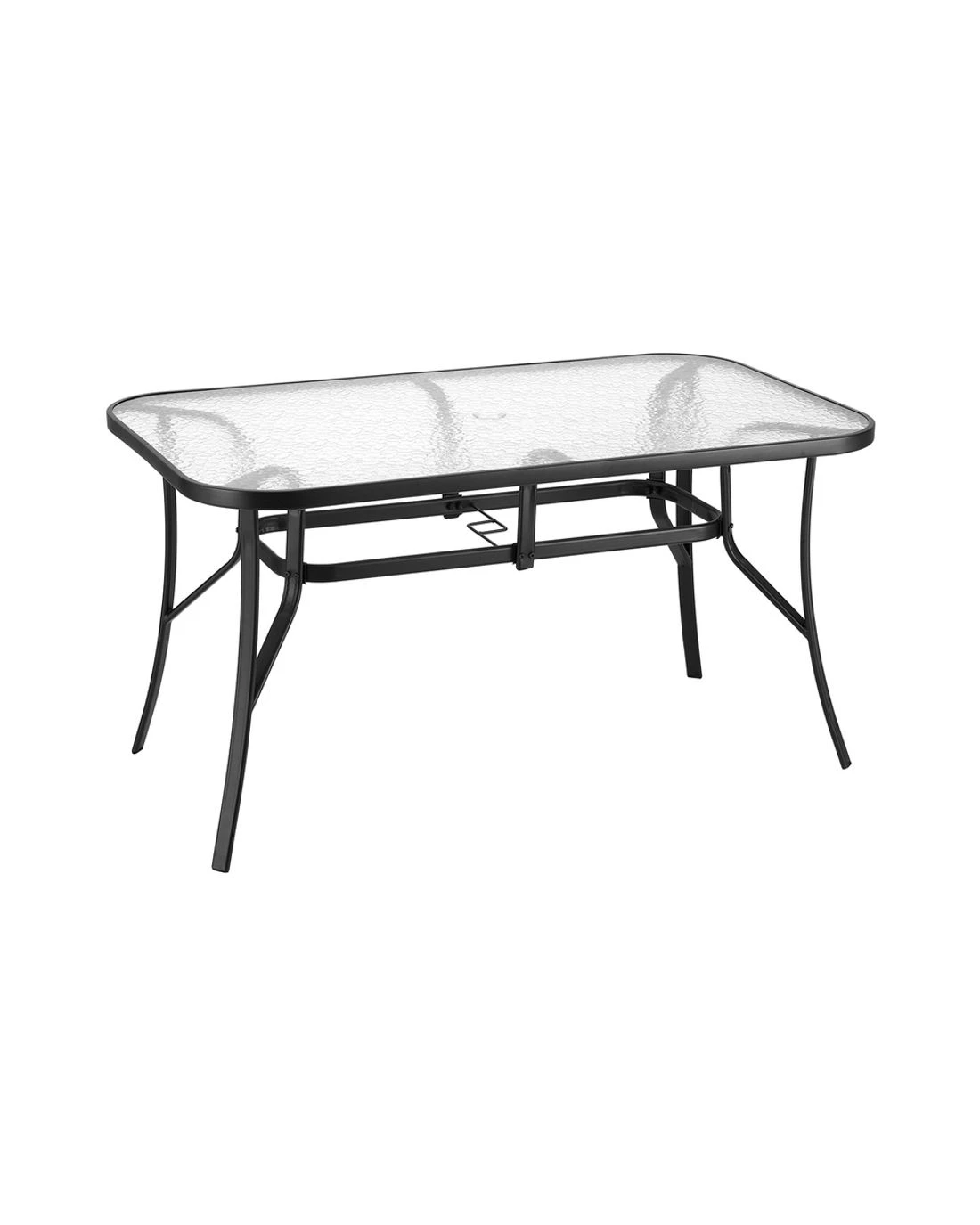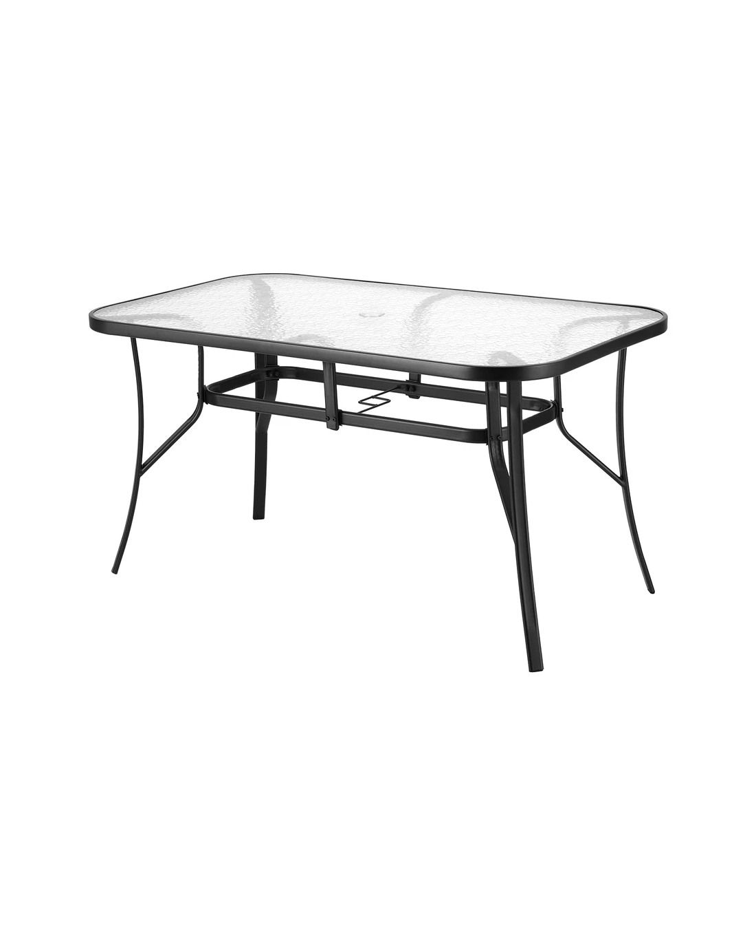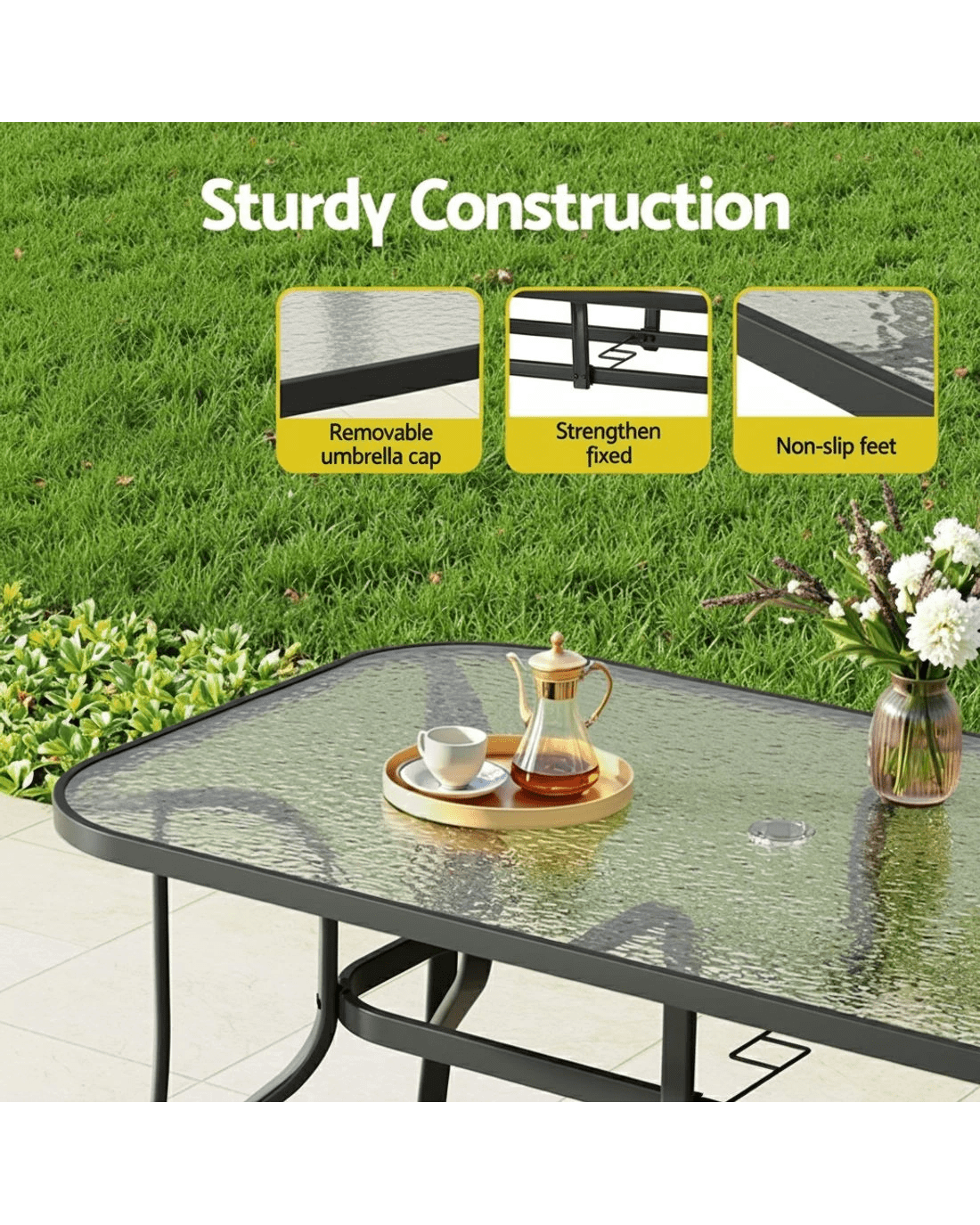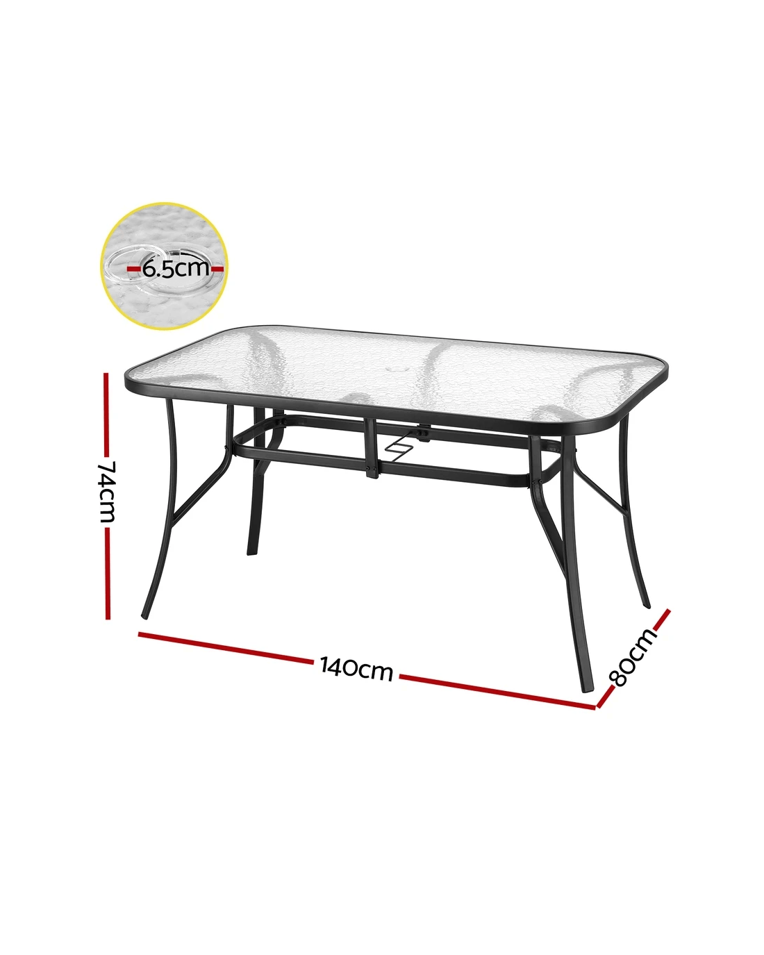Sold by Aisle SixGardeon 140CM Outdoor Dining Table Steel Frame Tempered Glass Parasol Hole - Black