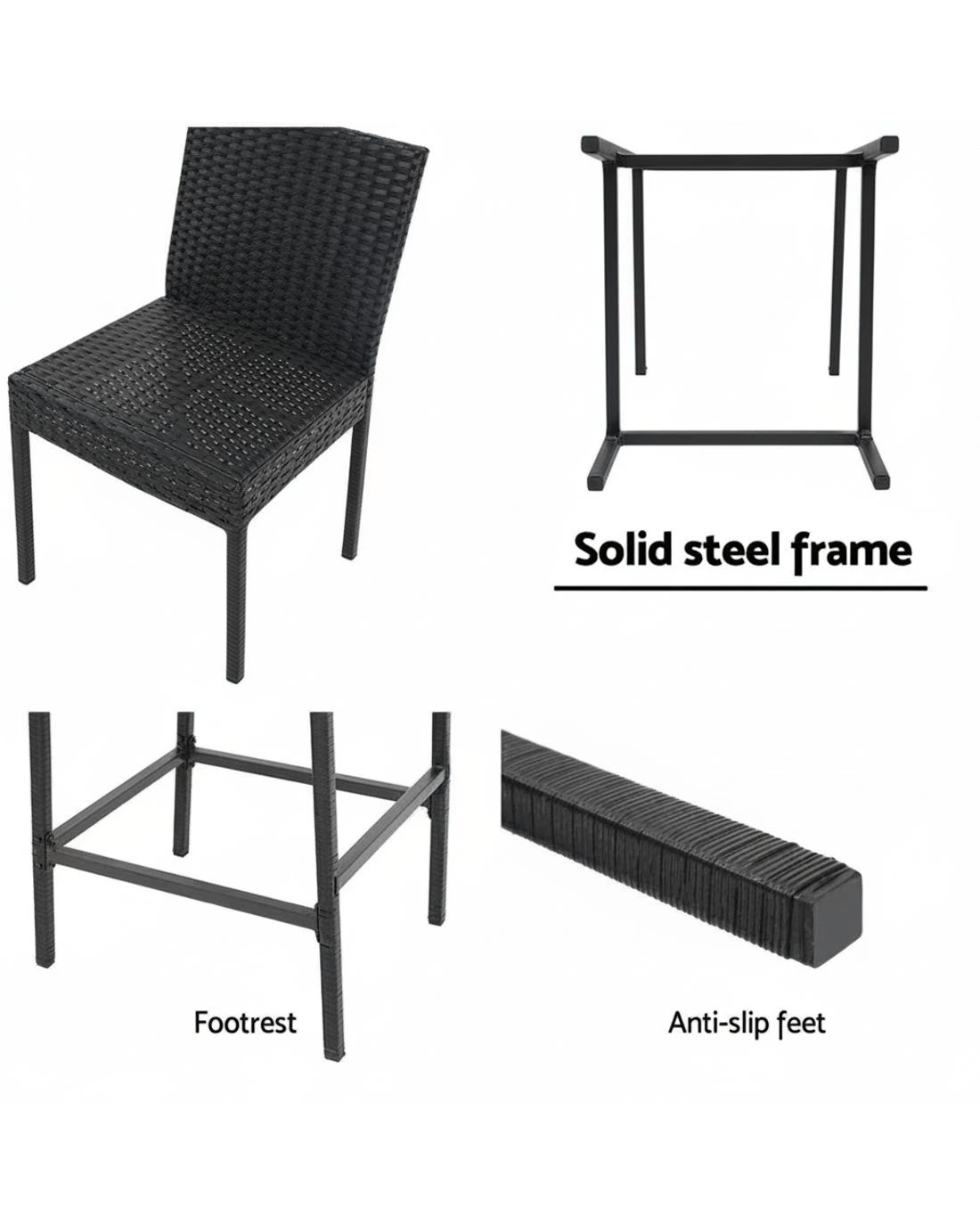 Gardeon 2-Piece Outdoor Bar Stools Dining Chair Bar Stools Rattan - Black