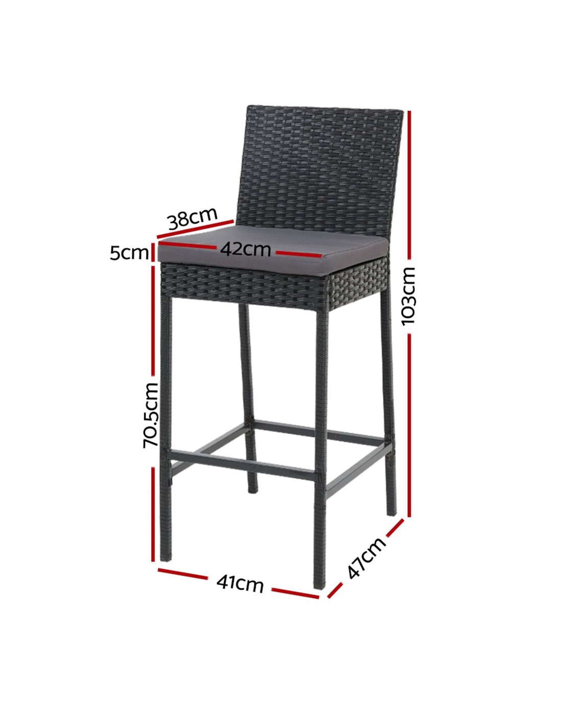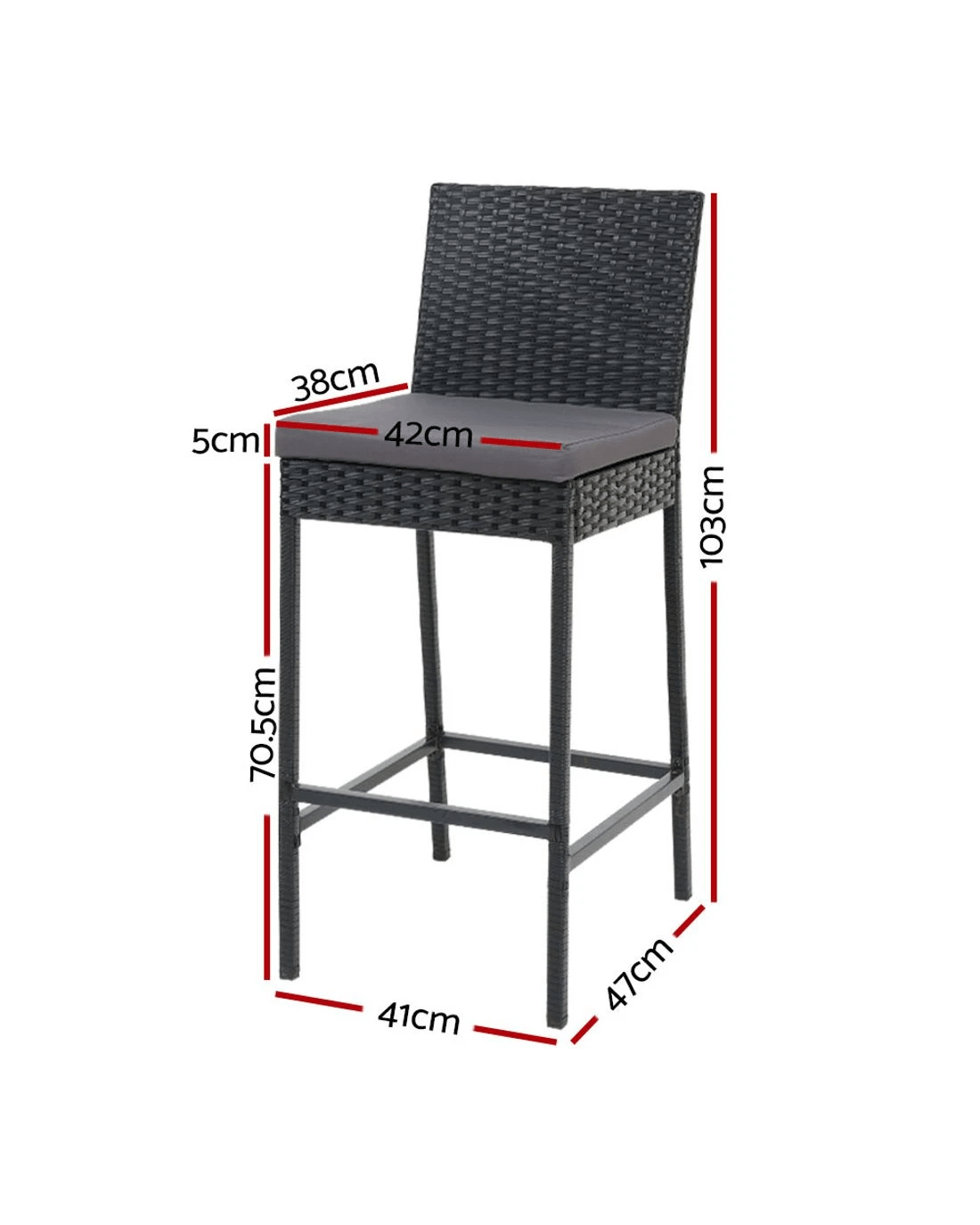 Handsome and hand-woven, our Gardeon Outdoor Bar Stool is right at home in any outdoor setting, at your patio or by the poolside. The bar stool has a sturdy powder-coated steel frame with a reinforced base design and quality PE wicker that is both UV-resistant and weather-resistant, meaning it is designed to handle the rain and sun without any worries for years to come. Plus, due to the use of UV-resistant wicker our stool does not age easily unlike lesser rattan stools. The stool has anti-slip feet which makes it suitable for even the most slippery of situations, while the inclined backrest and extra-comfy 5cm thick foam cushion allows you to socialise for hours on end without sore backs or bottoms. Best of all, you really do not need to worry over spilt milk because the removable and washable seat cushion cover makes cleaning up hassle-free. Chill out with the ultimate cool that is our outdoor bar stool.