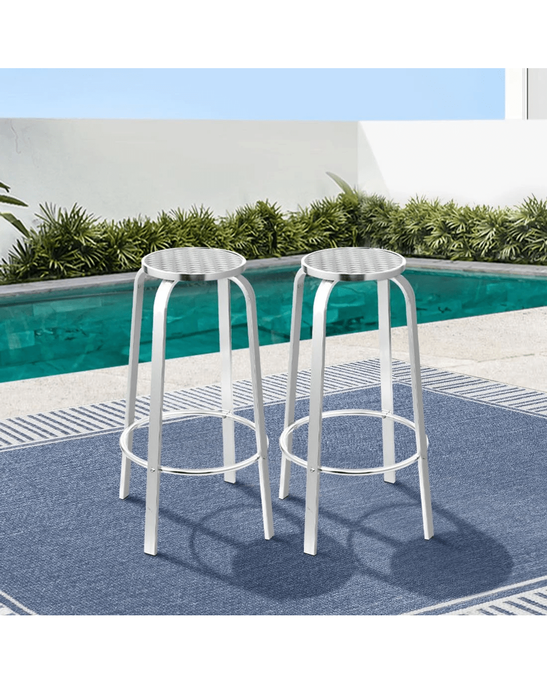 Sold by Aisle SixGardeon 2-Piece Outdoor Bar Stools Patio Indoor Bistro Aluminum Chairs - Silver